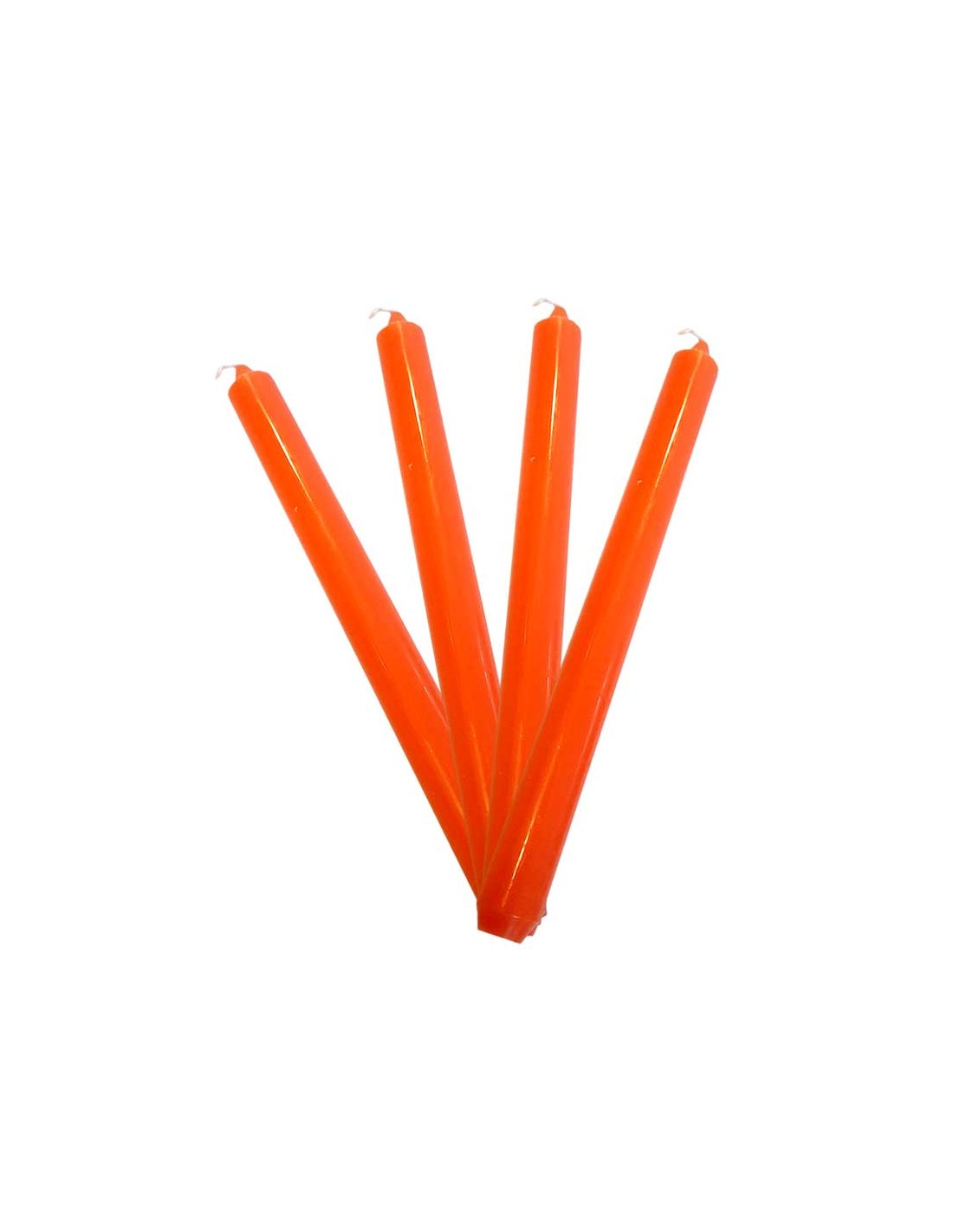 Set of 4 candles MH bright red colored in the mass. 25 cm high, they do not give off perfume or smoke and do not drip. Time of combustion: approximately 8 hours.