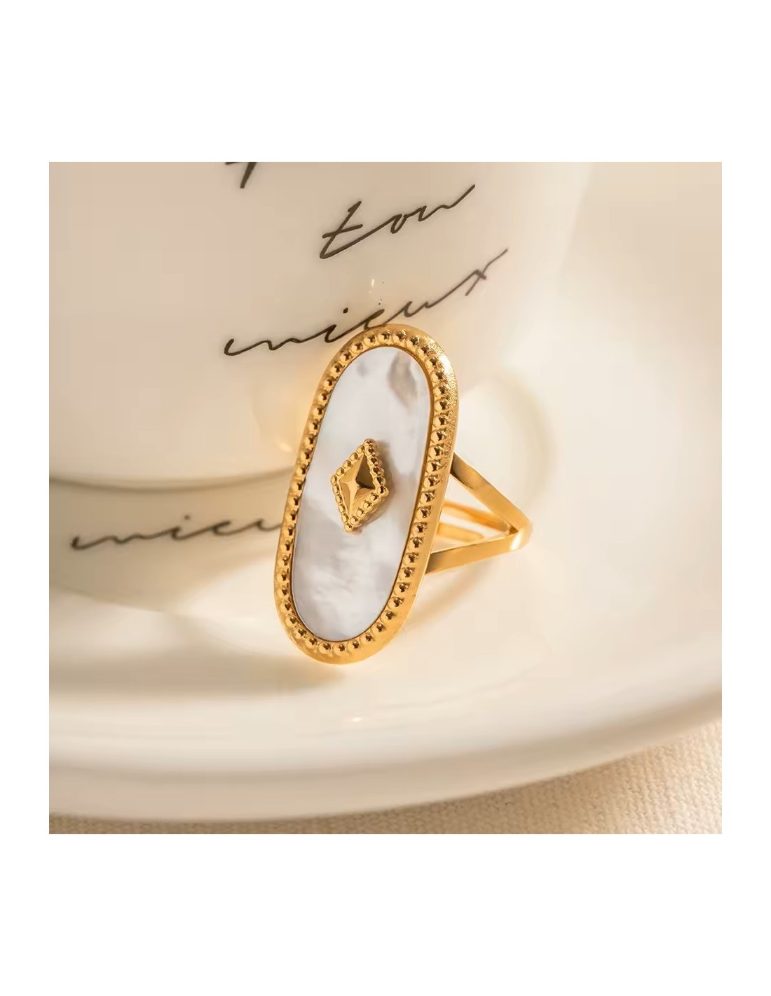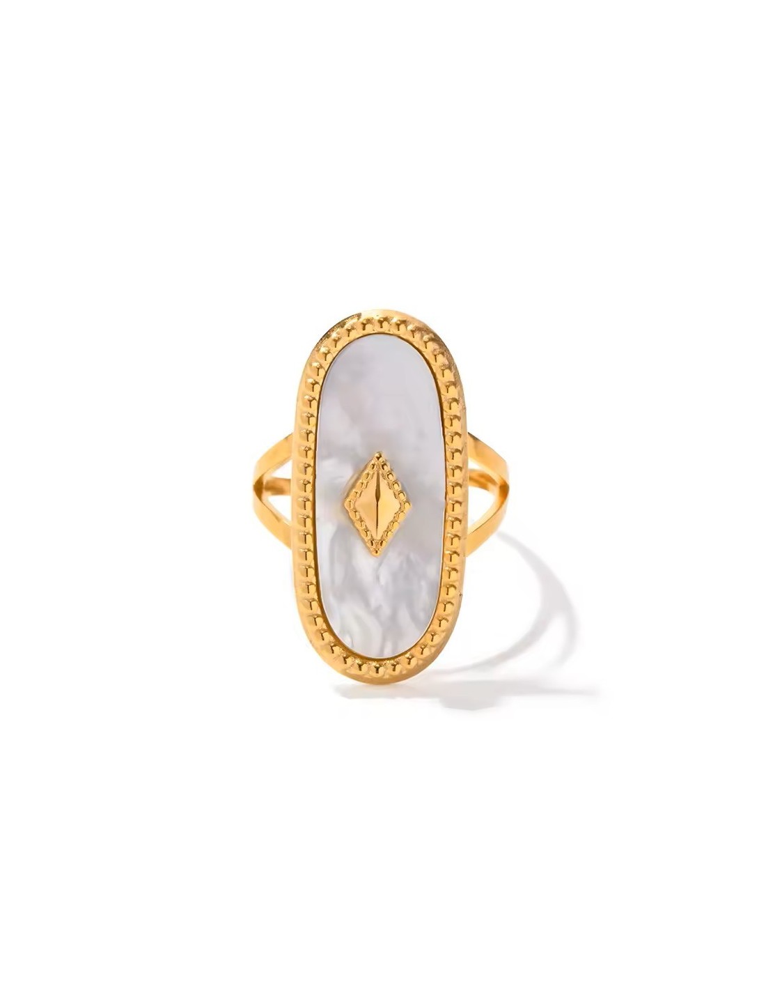 Elevate your style with this handcrafted ring that blends artisanal finesse and boho spirit. Featuring an oval-shaped natural stone set in gleaming gold-plated steel, it adds a refined yet natural touch to any outfit.