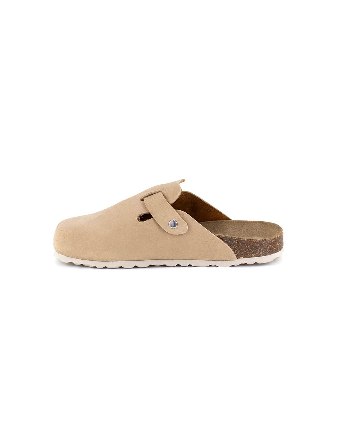 Clogs, also called clogs, beige leather. These comfortable shoes are very trendy!