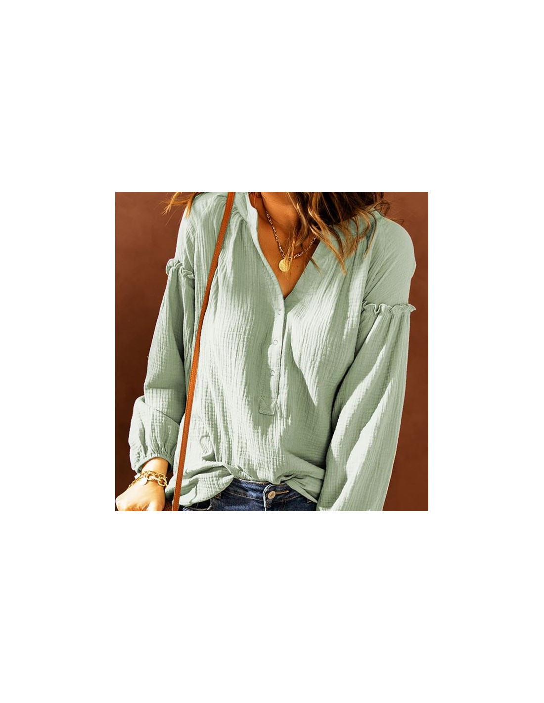 With its loose fit, this blouse is comfortable to wear. Entirely in cotton, it is airy and light, perfect for summer days. The wide V-neck with the few buttons and the puffed sleeves are typical of the bohemian style, giving a relaxed air.