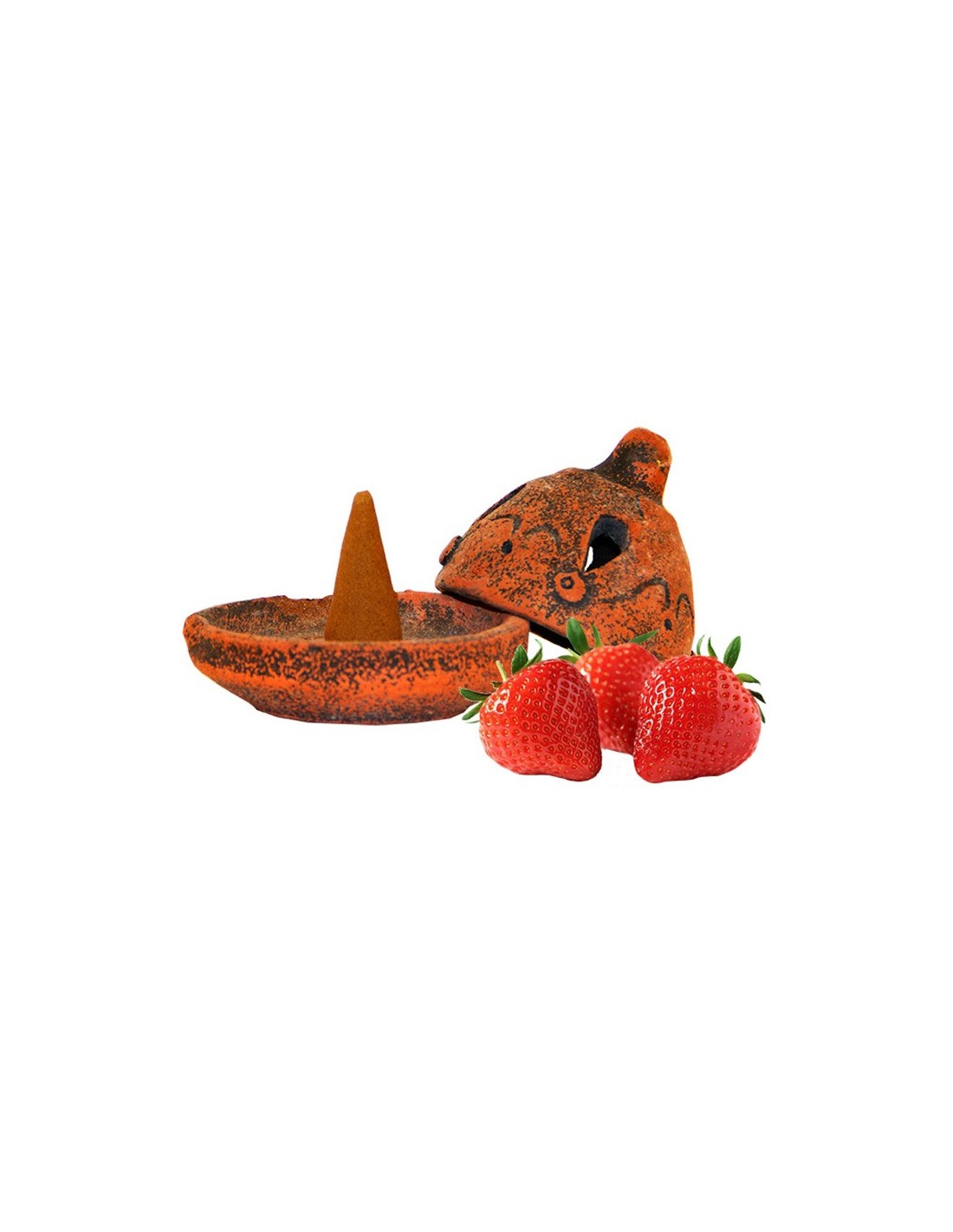 Terracotta incense holder with cone - Strawberry