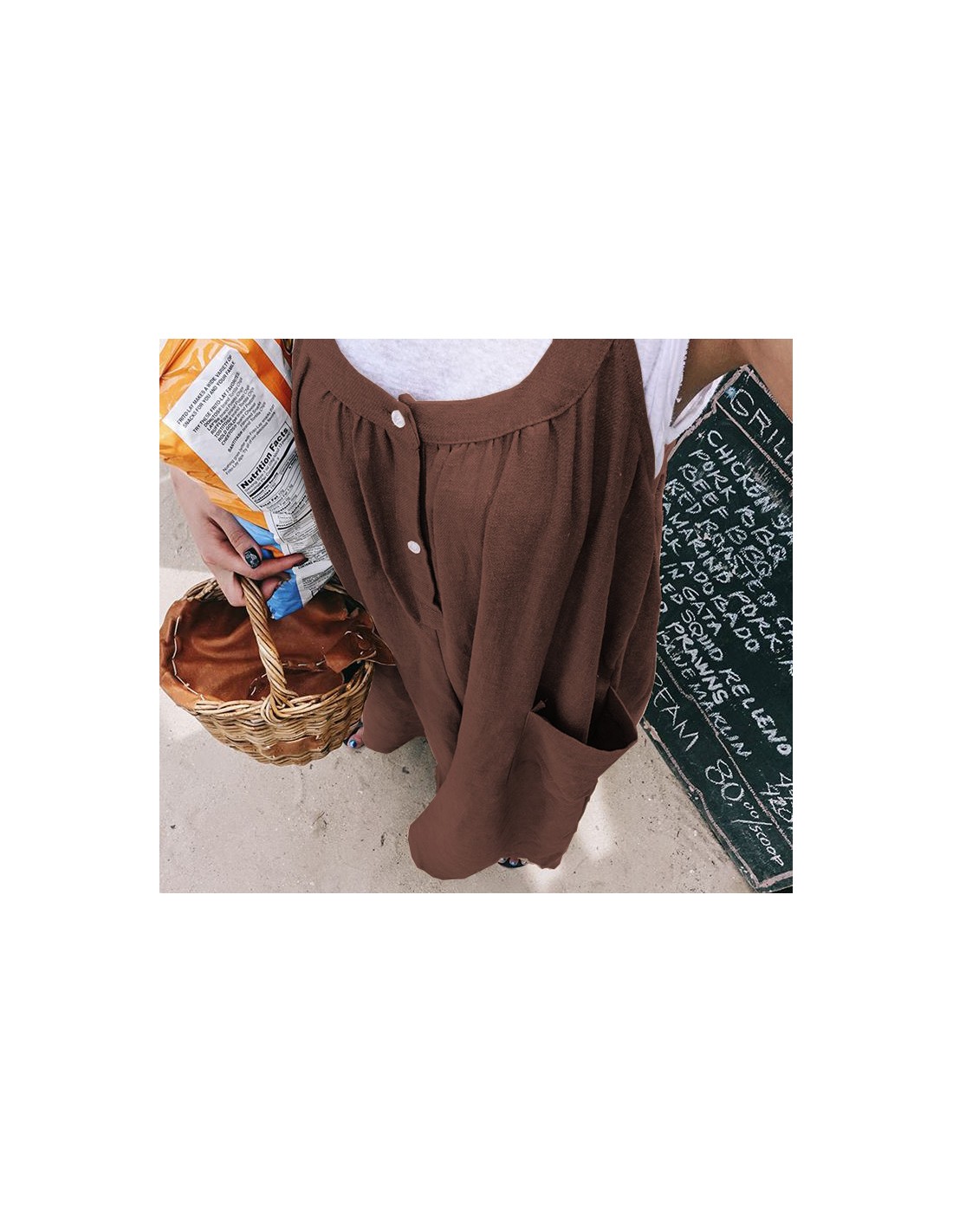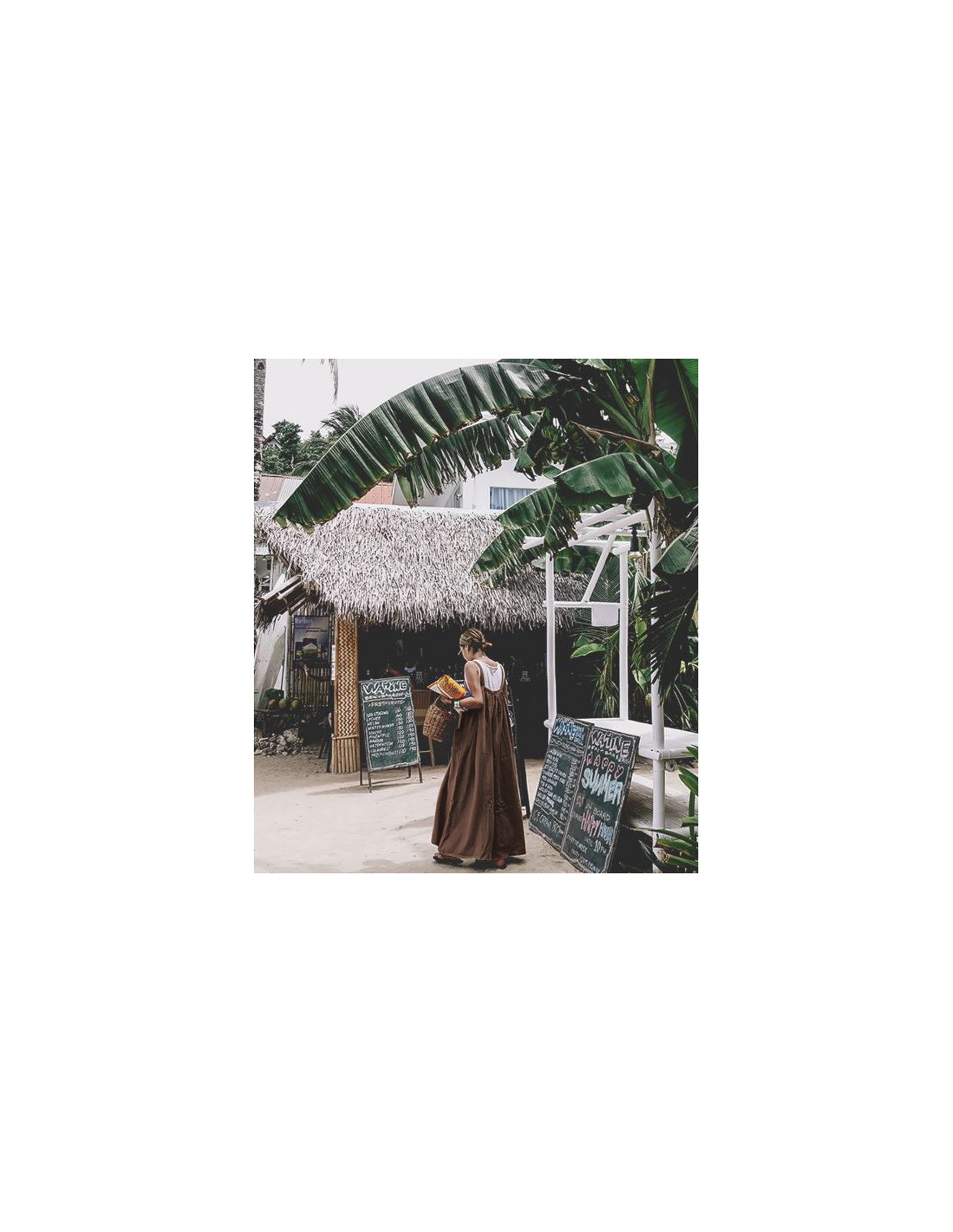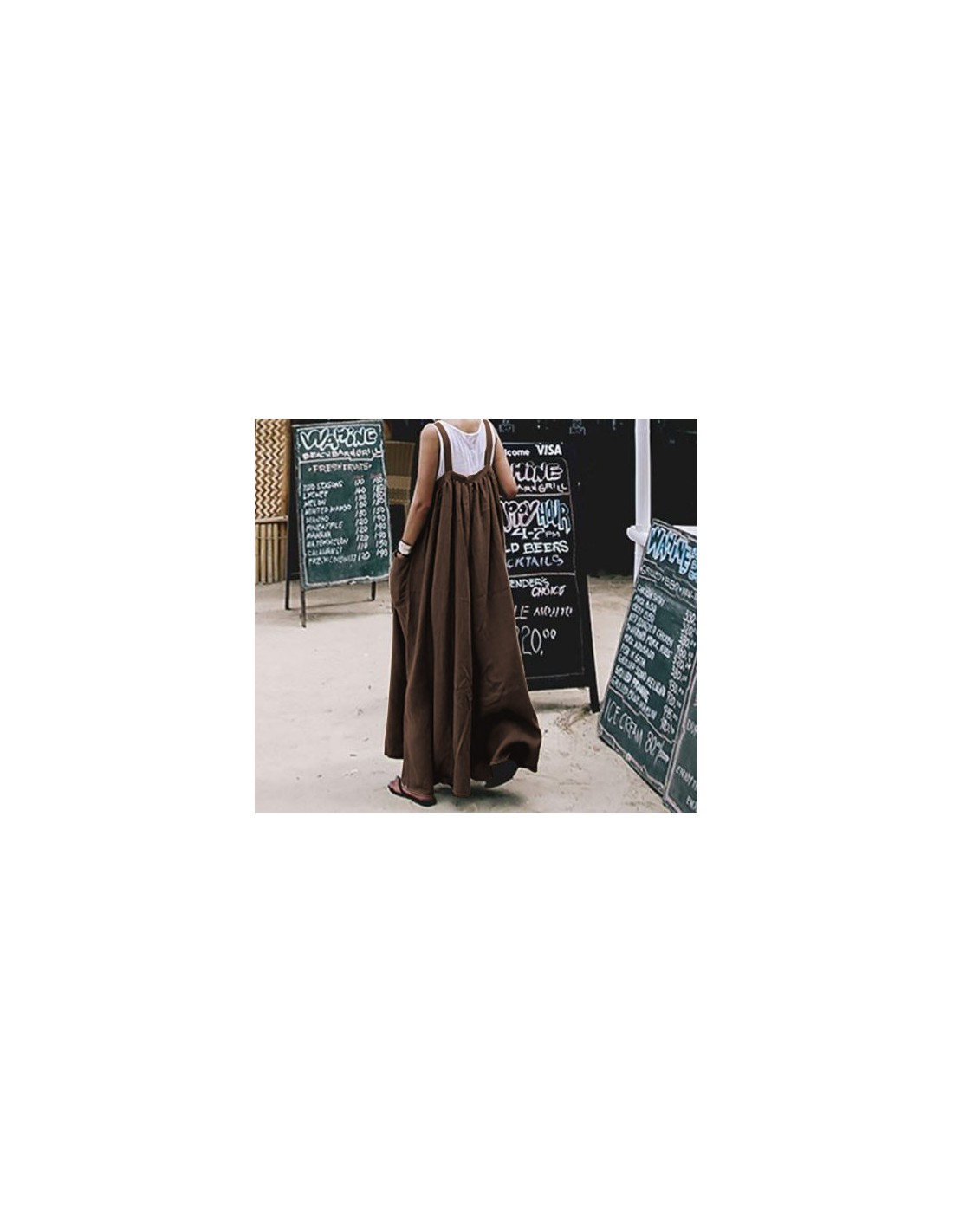 Loose brown cotton and linen dungarees, casual boho style. Very pleasant to wear, very airy, it can be worn with or without a t-shirt and gives a long dress effect.