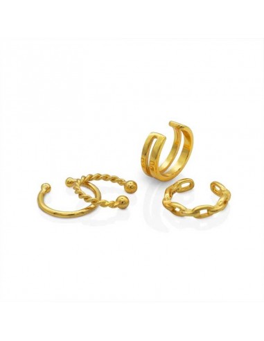 Lot de 4 boucles d'oreille en argent 925 plaquées or à passer autour du pavillon sans avoir à le percer. Chaque anneau est différent : un simple, un tressé, un en chaîne et un dernier à deux bandes.