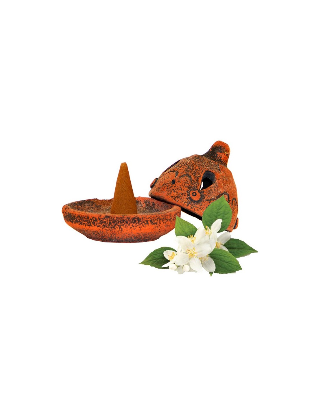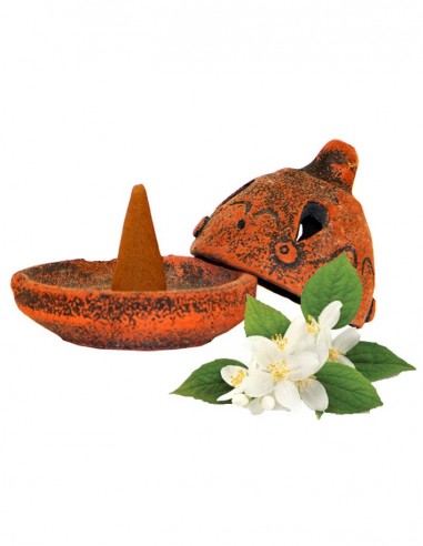 Support encens en terre cuite avec cône - Jasmin
