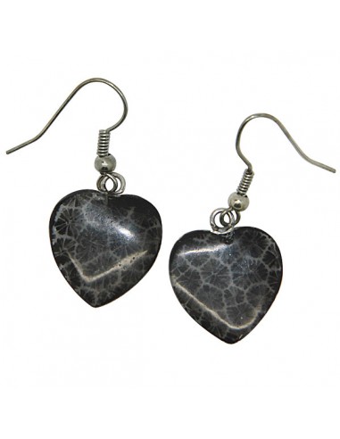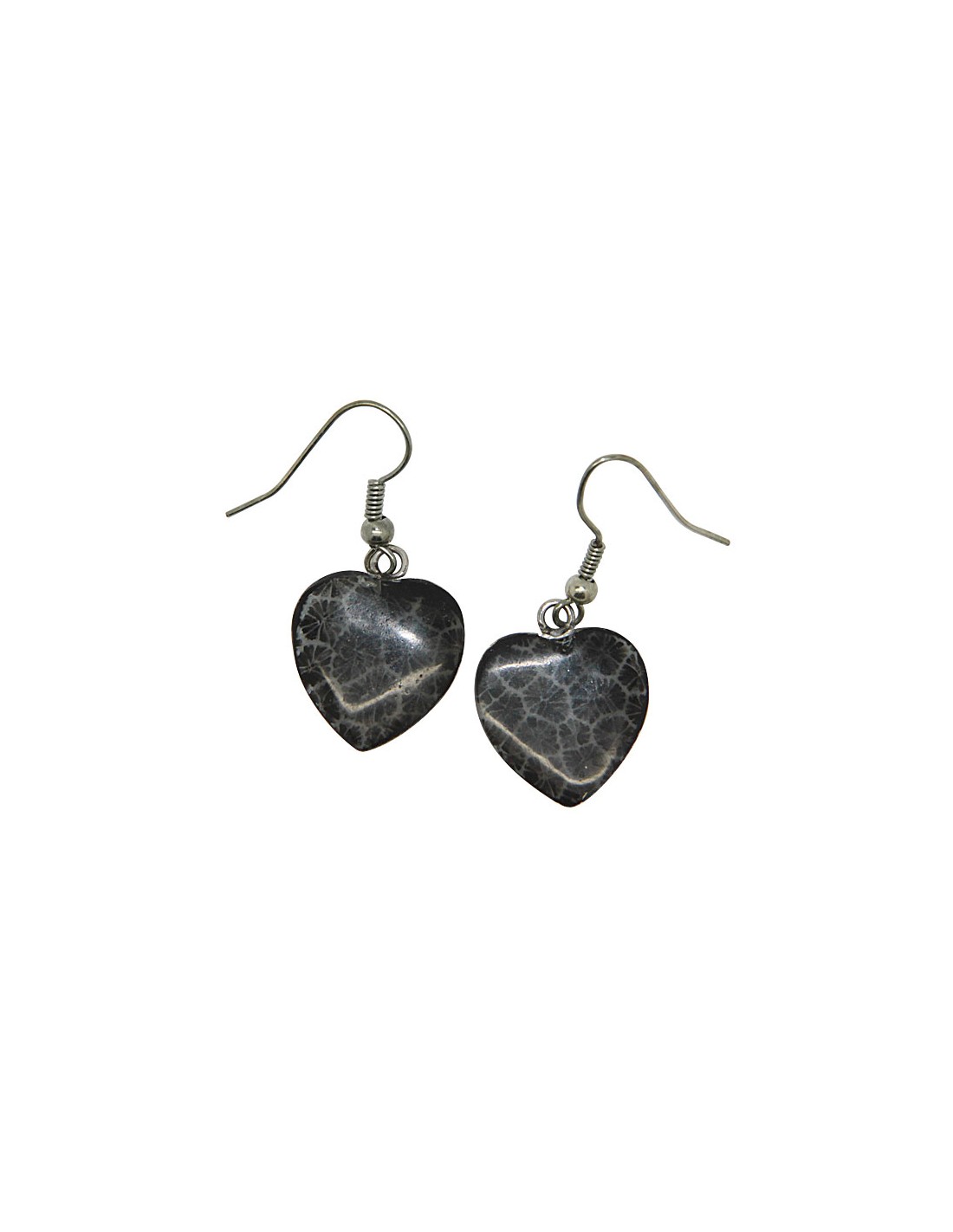 Boucles d'oreilles pendantes en forme de jolis cœurs arrondis. Ces bijoux ont été réalisés entièrement à la main, en résine noire brillante.