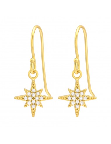 Boucles d'oreilles Etoiles avec zircons, en argent 925 et plaquée or