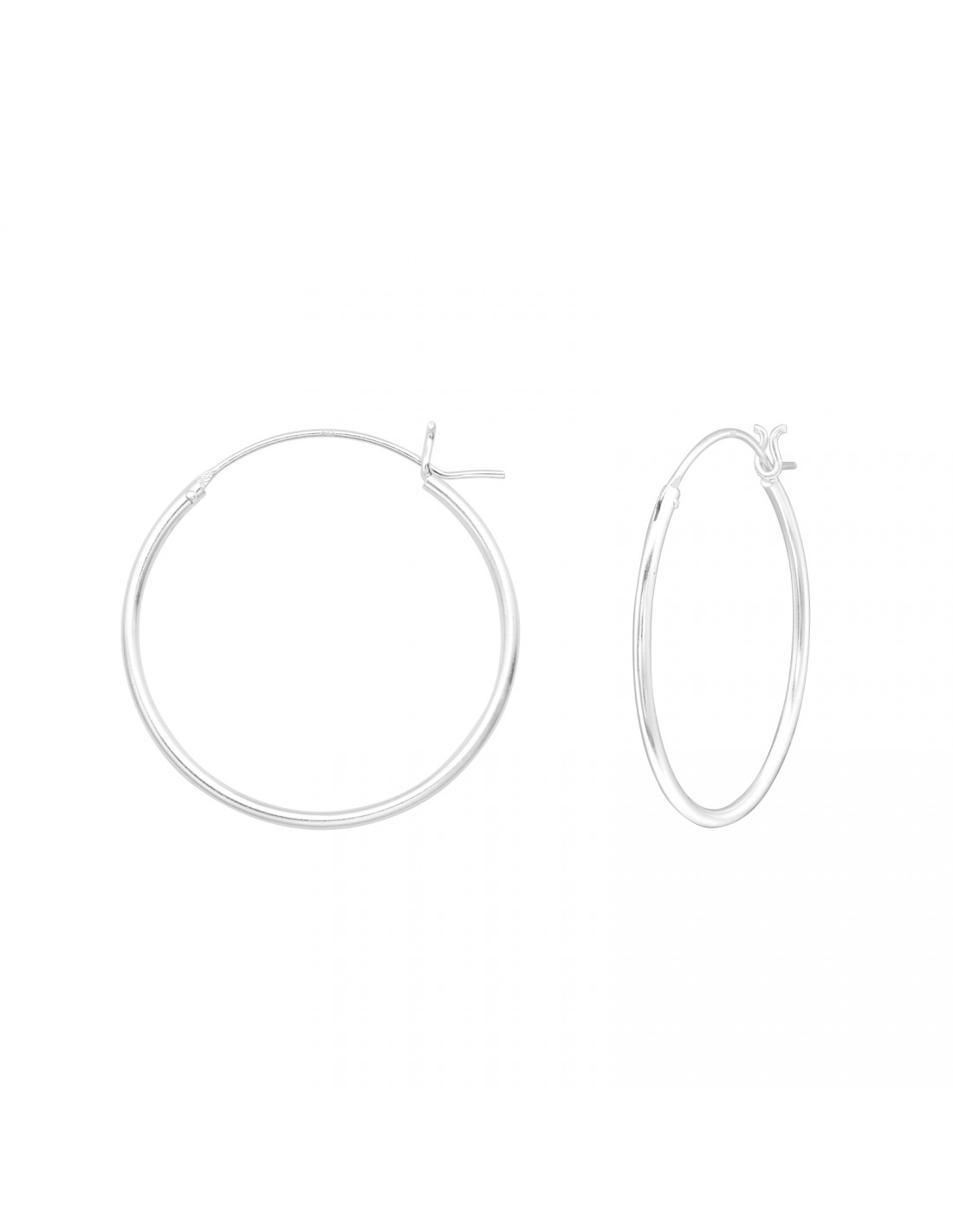 Fabriquée en argent sterling 925 de haute qualité avec finition plaqué argent + E-Coat, cette paire a un poids en argent de 1 g. Le cerceau mesure 1,2 mm x 25 mm (épaisseur x diamètre).