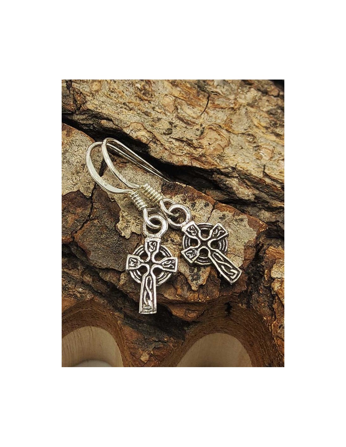 Boucles d'oreilles en forme de croix celtiques, en argent 925. Ces boucles d'oreille pendantes sont des bijoux délicats et discrets, symbole de la foi chrétienne mais aussi un héritage celtique.