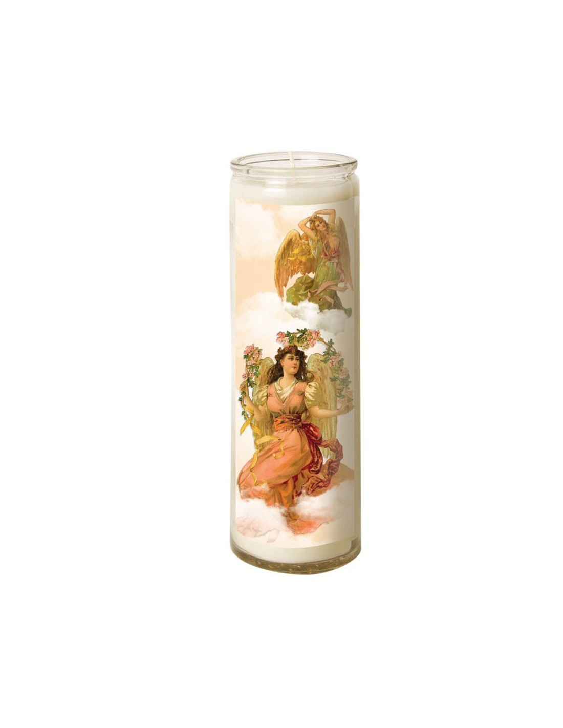 Bougie dans un récipient en verre transparent, pouvant brûler durant 7 jours consécutifs. De bonne qualité, elle ne dégage pas d'odeur. Avec l'image d'un duo d'anges dans un beau ciel orangé en décoration, cette bougie peut être utilisée pour la prière, la méditation, la décoration ou encore l'ésotérisme.