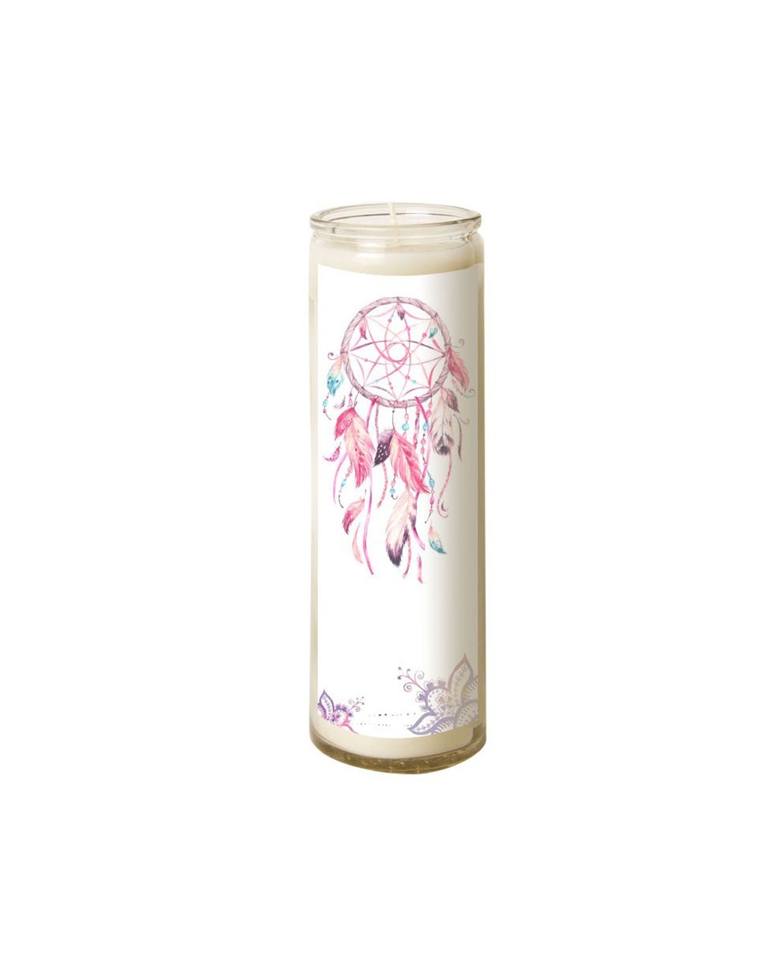 Bougie dans un récipient en verre transparent, pouvant brûler durant 7 jours consécutifs. De bonne qualité, elle ne dégage pas d'odeur. Avec l'image d'un bel attrape-rêve rose en décoration, cette bougie peut être utilisée pour la prière, la méditation, la décoration ou encore l'ésotérisme.