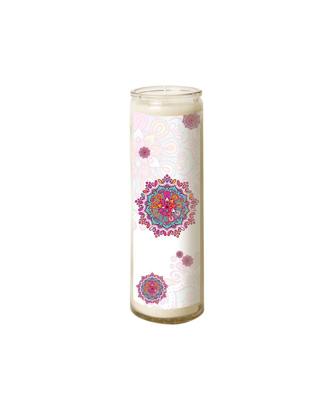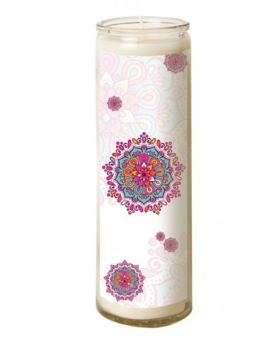 Avec une belle illustration de mandalas roses et oranges en décoration, cette bougie peut être utilisée pour la prière, la méditation, la décoration ou encore l'ésotérisme.