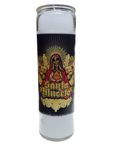 Avec l'image de la Sainte Mort, une Vierge squelettique, pour el Dia de Los Muertos, cette bougie est parfaite pour apporter une ambiance originale !