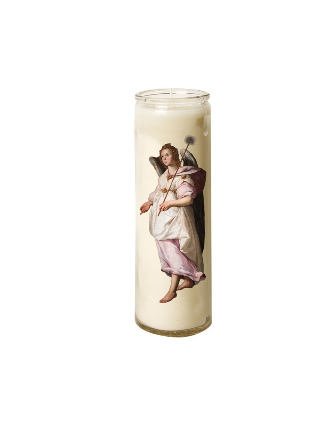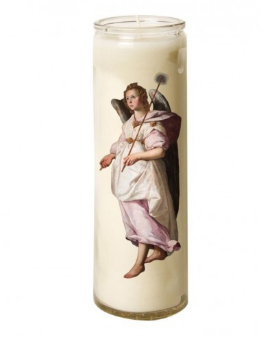 Bougie dans un récipient en verre transparent, pouvant brûler durant 7 jours consécutifs. De bonne qualité, elle ne dégage pas d'odeur. Avec l'image d'un ange tenant un sceptre en décoration, cette bougie peut être utilisée pour la prière, la méditation, la décoration ou encore l'ésotérisme.