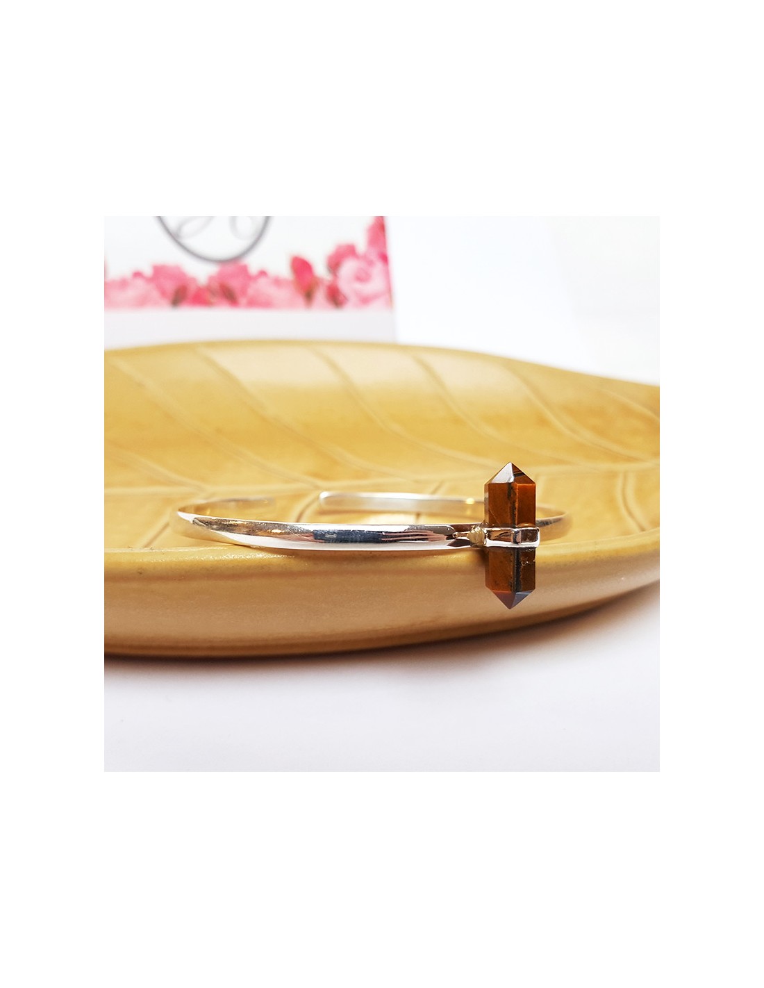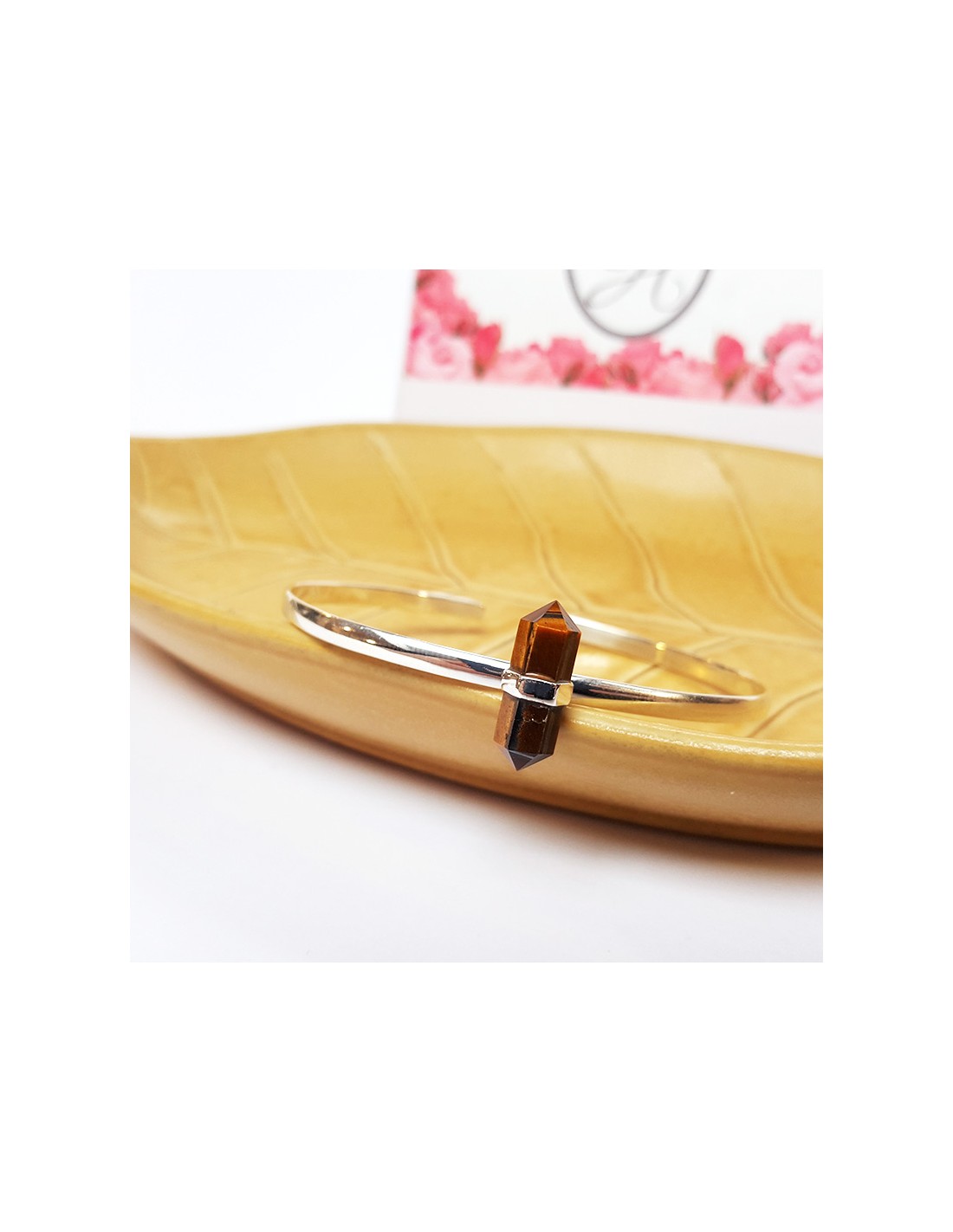 Ce bracelet en véritable argent 925 est orné d'une belle pierre fine d'œil de tigre taillé en double pointe. Accessoire discret et chic, son design épuré met en valeur la pierre fine.