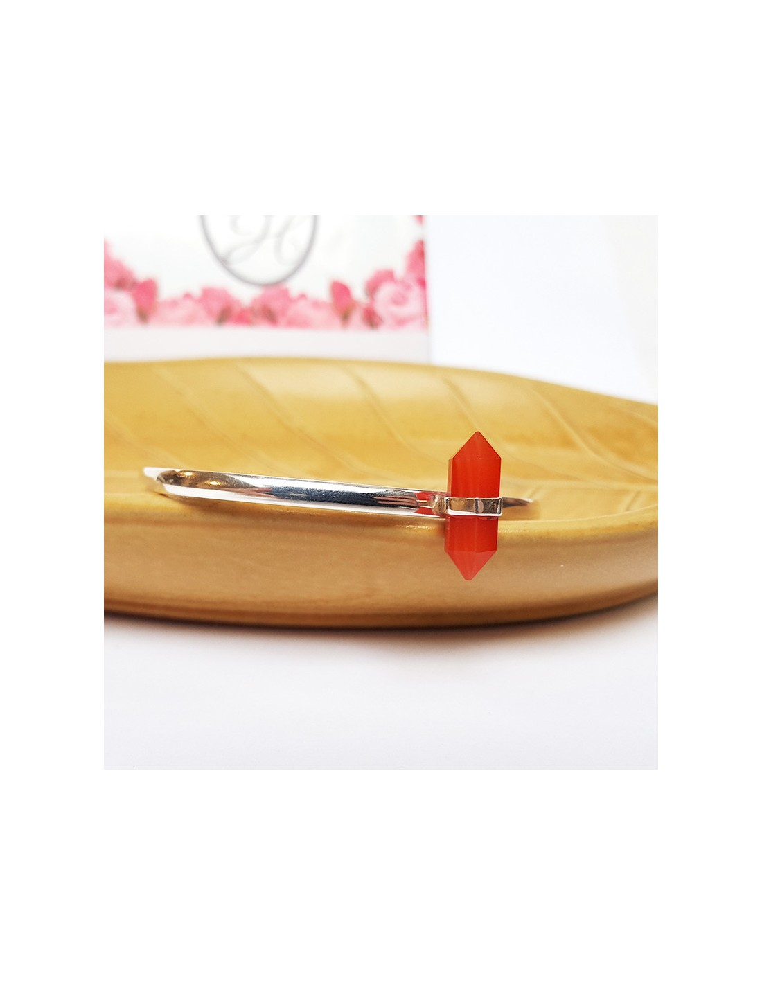 Ce bracelet en véritable argent 925 est orné d'une belle pierre fine de sardonyx taillé en double pointe. Accessoire discret et chic, son design épuré met en valeur la pierre fine.