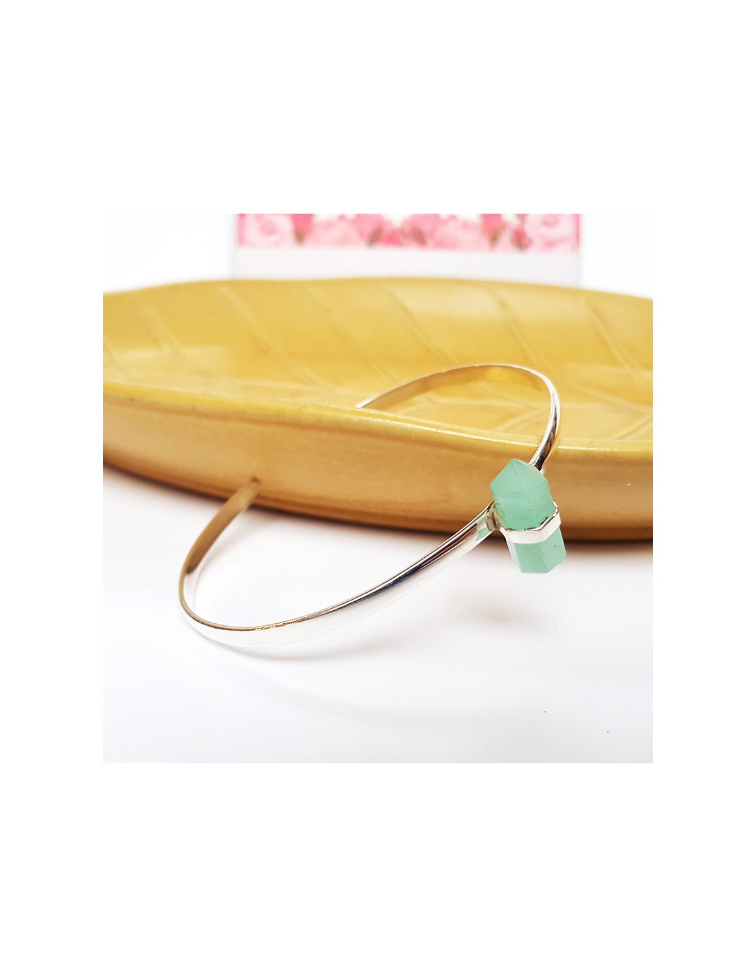 Ce bracelet en véritable argent 925 est orné d'une belle pierre fine de calcédoine aqua taillée en double pointe. Accessoire discret et chic, son design épuré met en valeur la pierre fine.