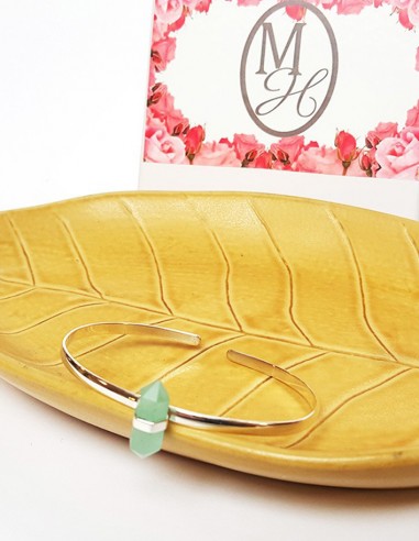 Ce bracelet épuré en argent 925 est monté d'une double pointe taillée de calcédoine aqua. Un bijou sophistiqué tout en restant sobre.