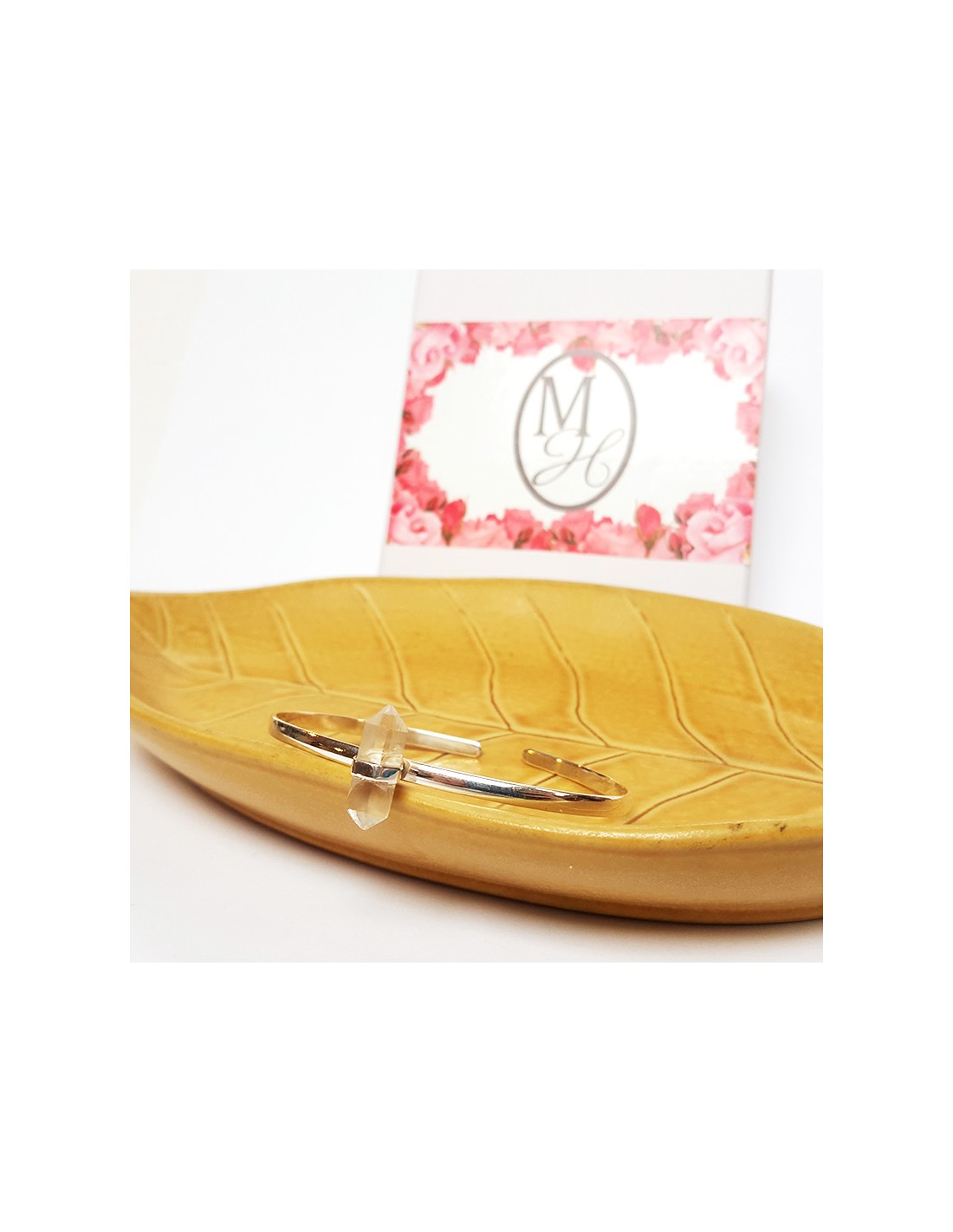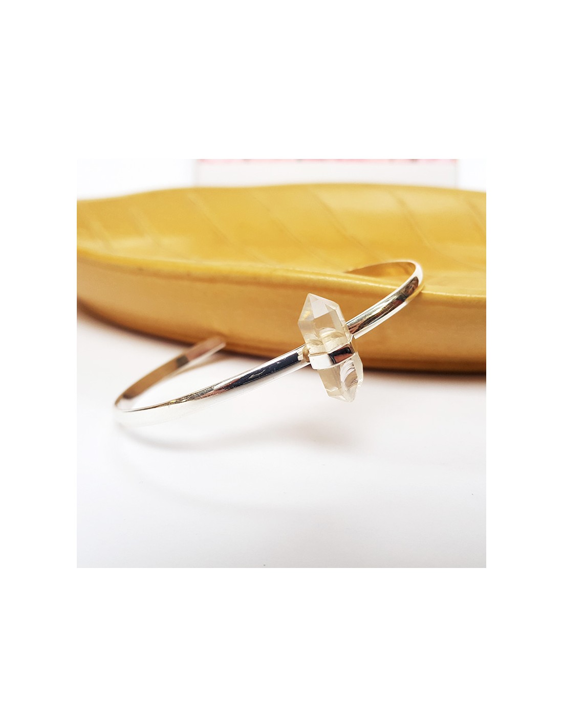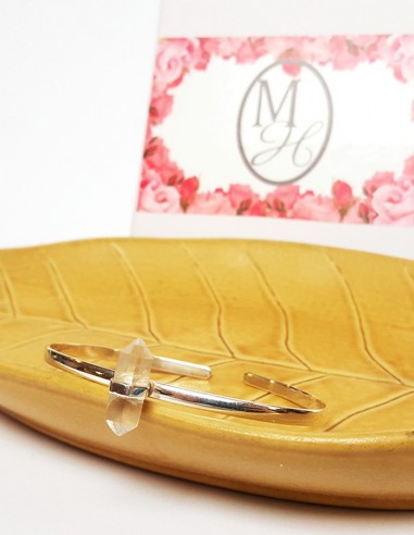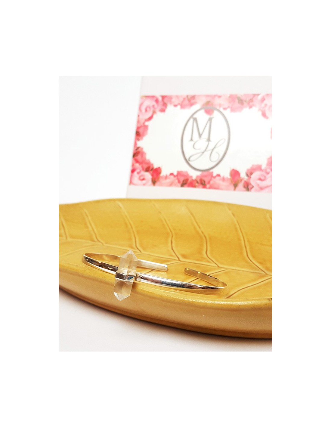 Ce bracelet en véritable argent 925 est orné d'une belle pierre fine de cristal de roche taillé en double pointe. Accessoire discret et chic, son design épuré met en valeur la pierre fine.