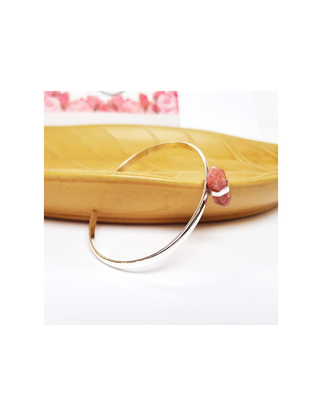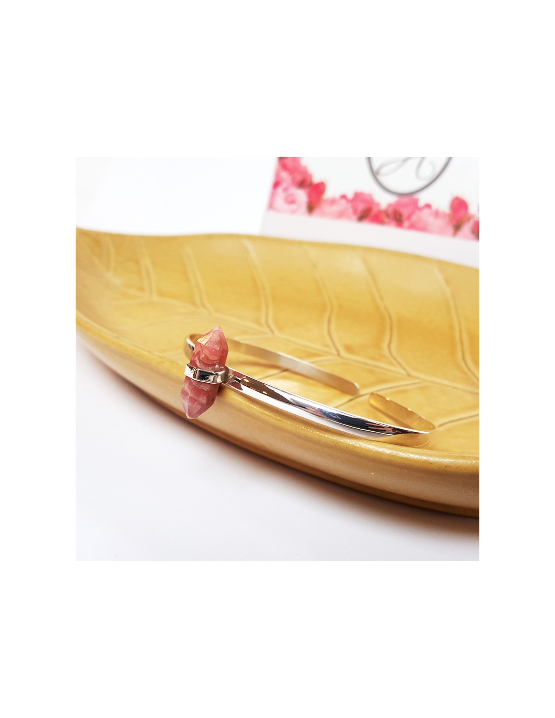 Ce bracelet en véritable argent 925 est orné d'une belle pierre fine de rhodochrosite taillée en double pointe. Accessoire discret et chic, son design épuré met en valeur la pierre fine.