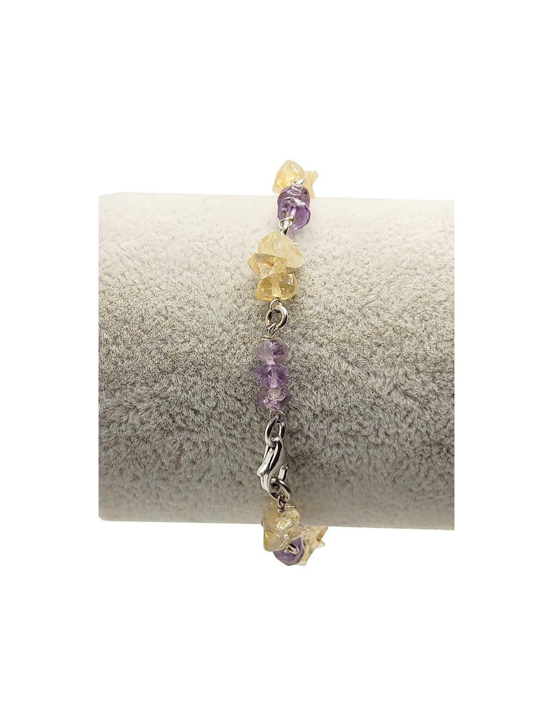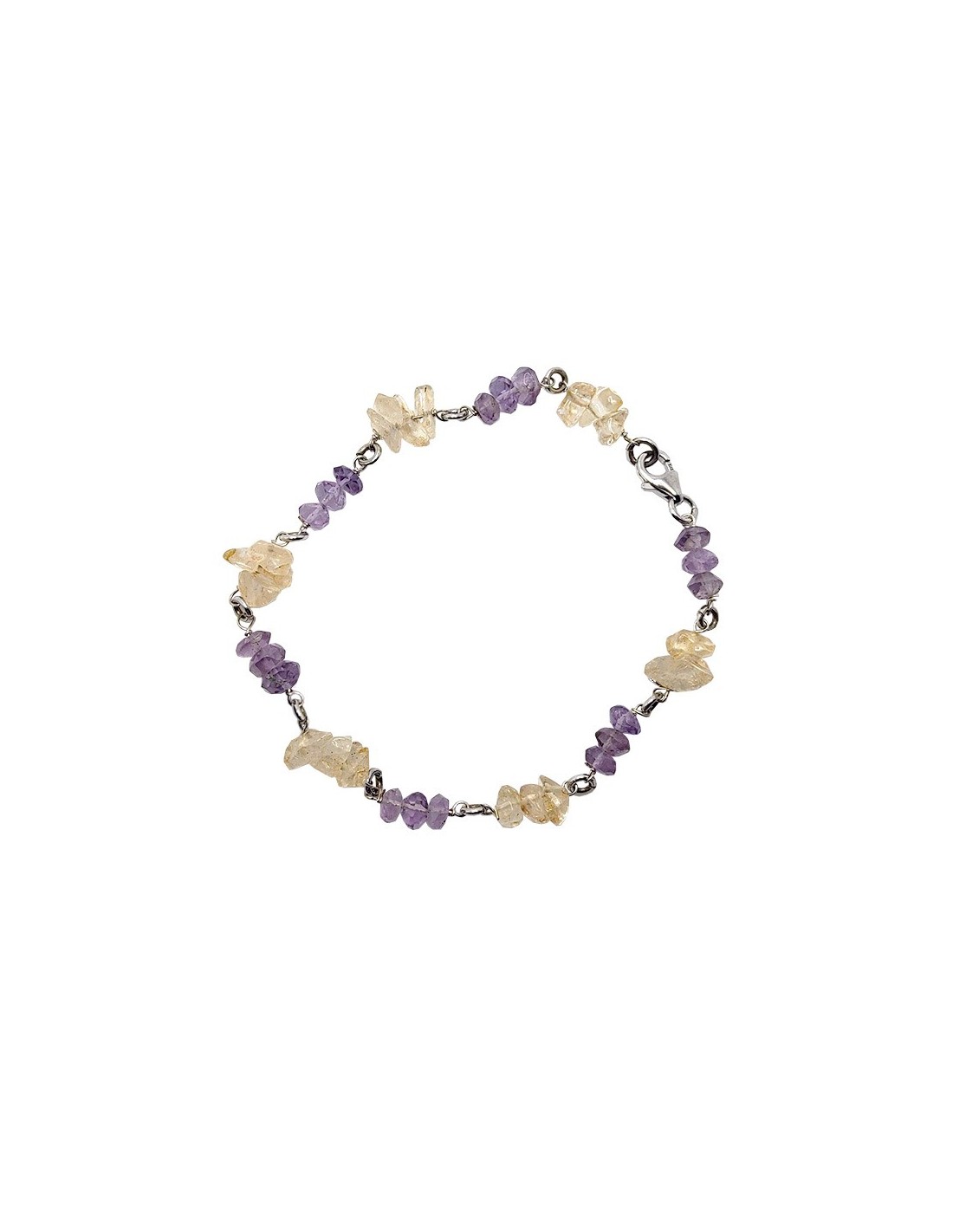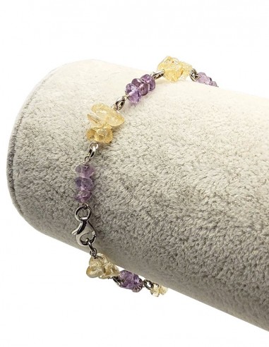Bracelet en argent 925 avec perles en améthyste et citrine. Les deux pierres sont placées en alternance pour un joli motif de couleurs.
