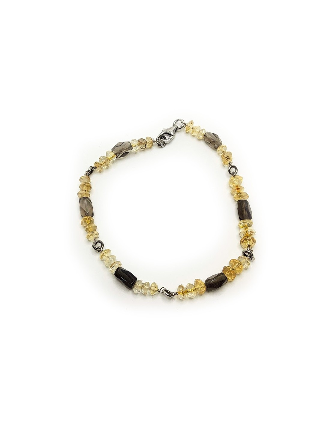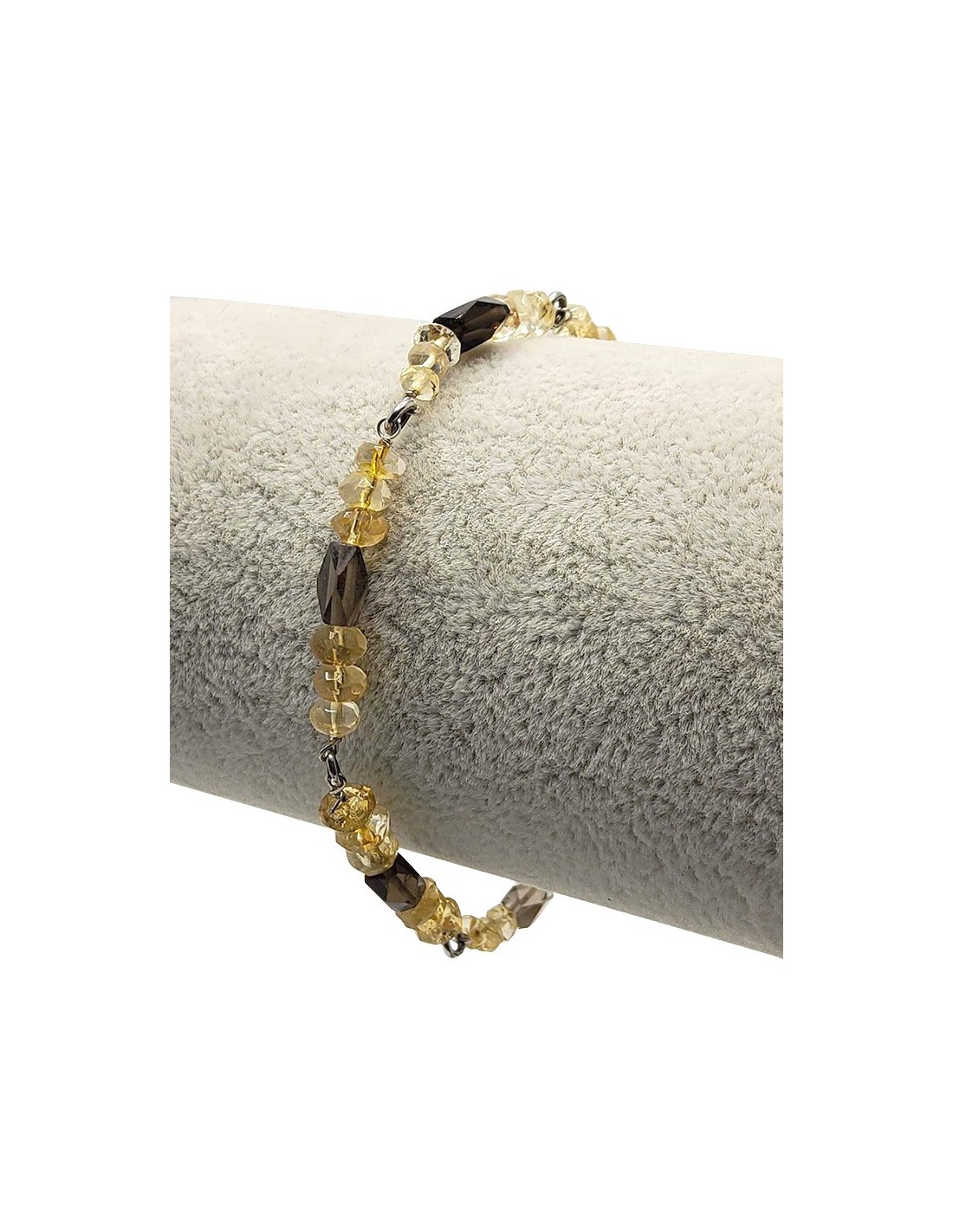 Bracelet en argent 925 avec perles en citrine et quartz fumé. Les deux pierres sont placées en alternance pour un joli motif de couleurs.