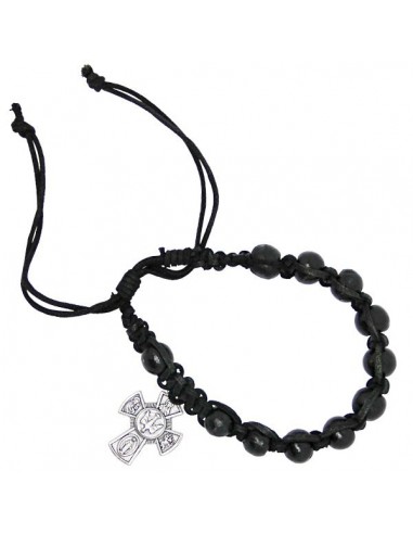 Le nouveau bracelet en fils de cuir et de perles de bois noirs tressés est un bijou élégant tout en ayant une touche nature et bohème. Il est orné d'une croix en métal argenté sur laquelle sont ciselées les figures des Saints Protecteurs. Le nombre de perle permet aussi de se servir de ce bijou comme d'une dizaine pour les prières.