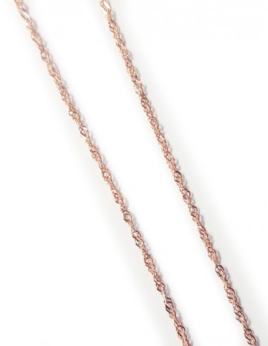 Chaîne Singapour de 45 cm en argent 925 plaqué or rose, reconnaissable à ses maillons entremêlés délicatement. Très confortable, cette chaîne est sophistiquée et chic, se portant seule ou se mariant harmonieusement avec un pendentif.