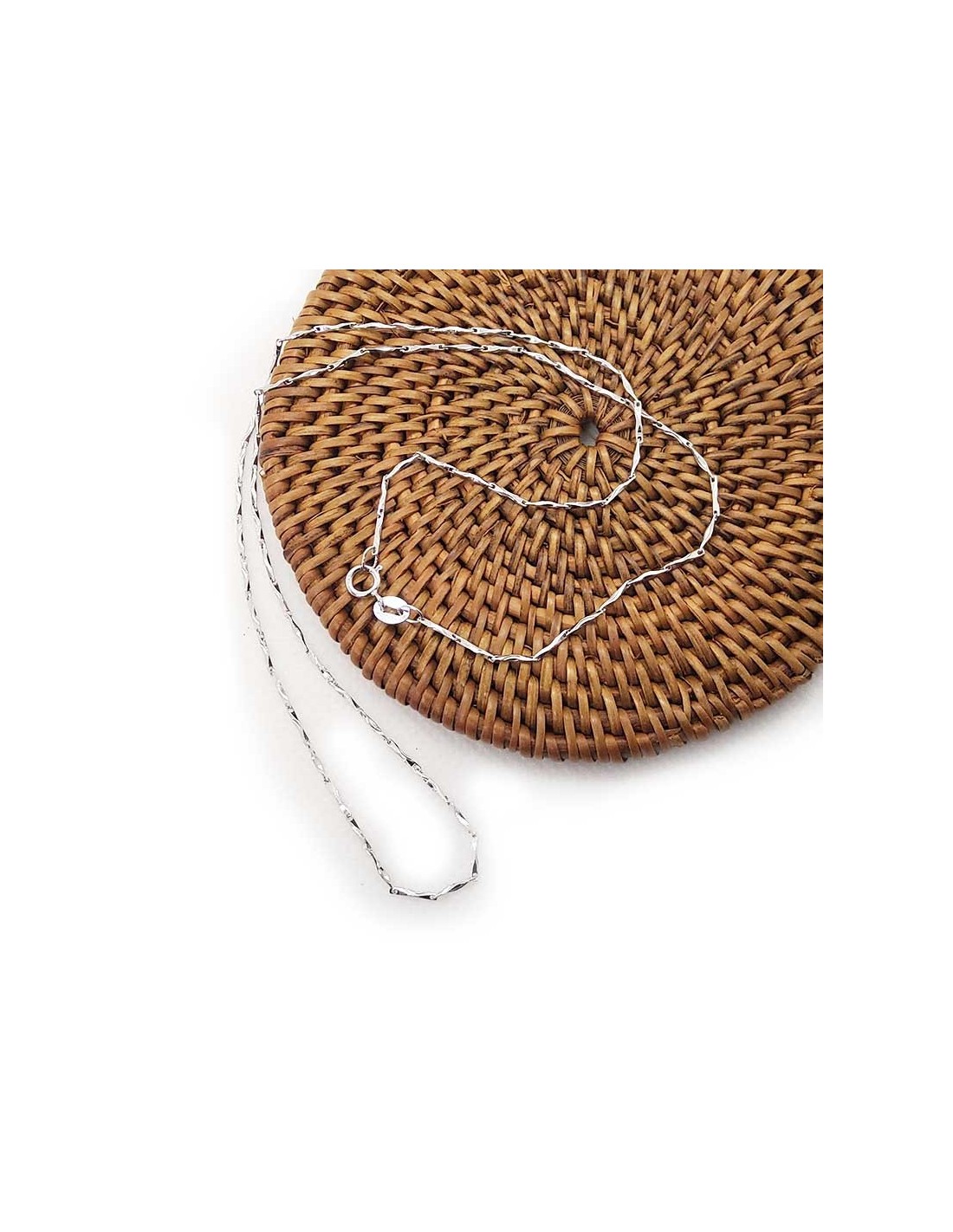 Chaîne de 45 cm en argent 925 avec une maille fantaisie moderne. Brillante et contemporaine, cette fine chaîne est d'une longueur ras-de-cou pour femme.
