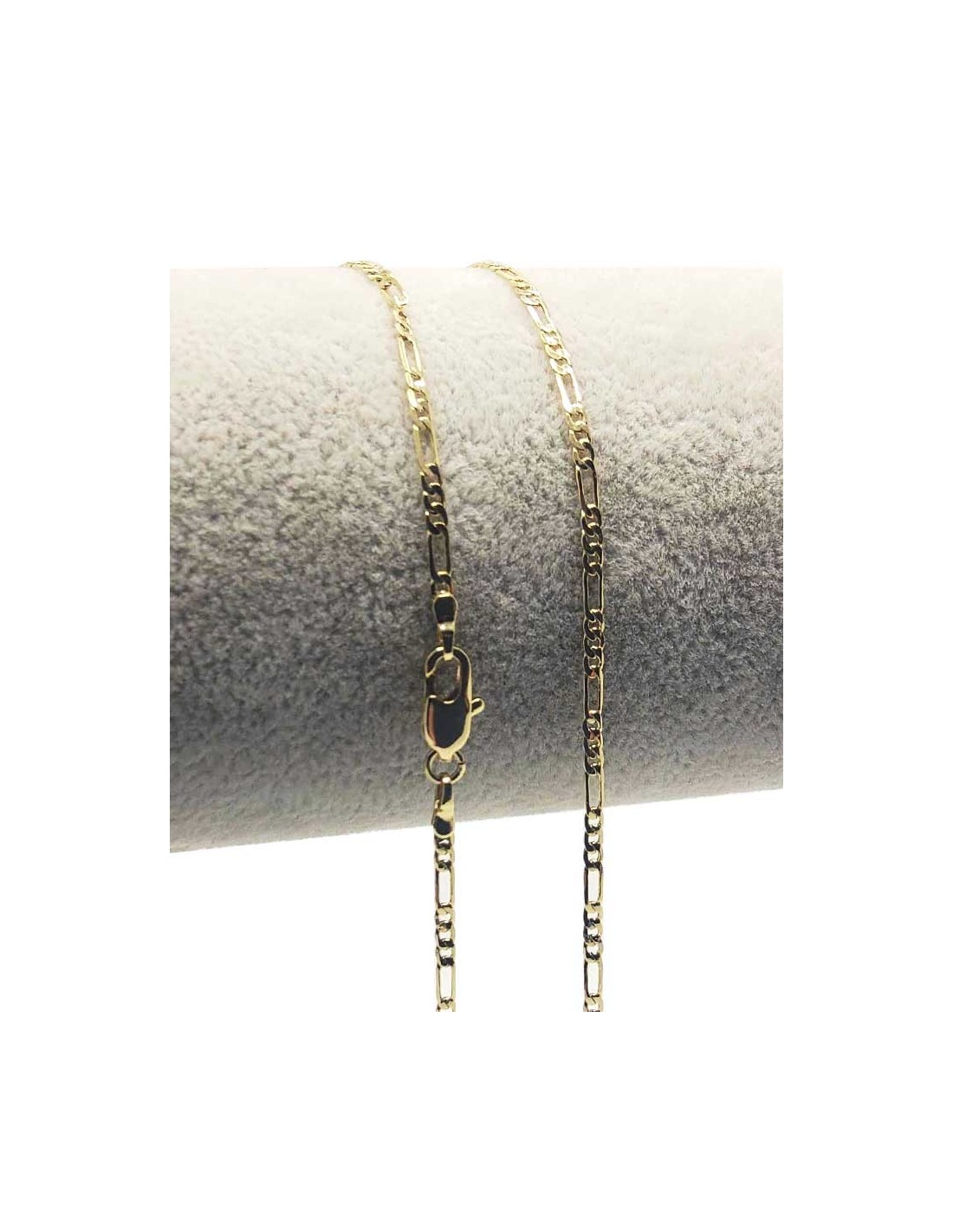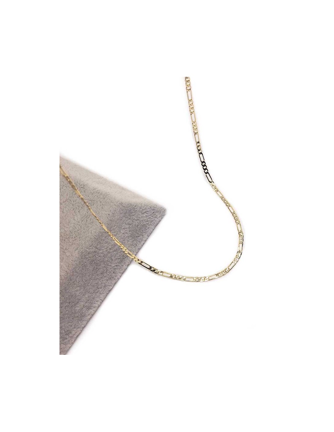 Chaîne figaro fine de 49 cm en cuivre plaqué or jaune 14k. Les maillons figaro se reconnaissent par leur enchaînement d'un maillon long et de trois maillons courts. Un design asymétrique pour un style moderne.