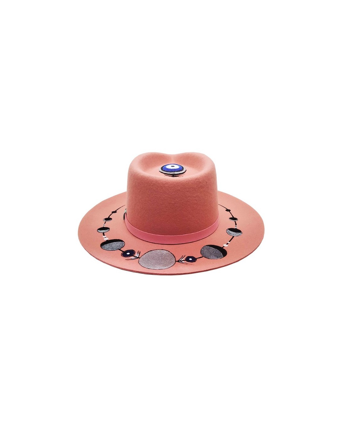 Chapeau fedora en feutre customisé - rose lune et oeil
