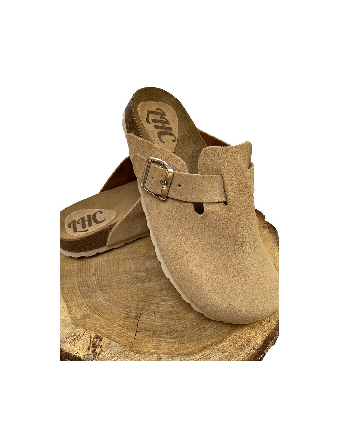 Clogs, aussi appelées sabots, beiges en cuir. Ces chaussures confortables sont très tendance !