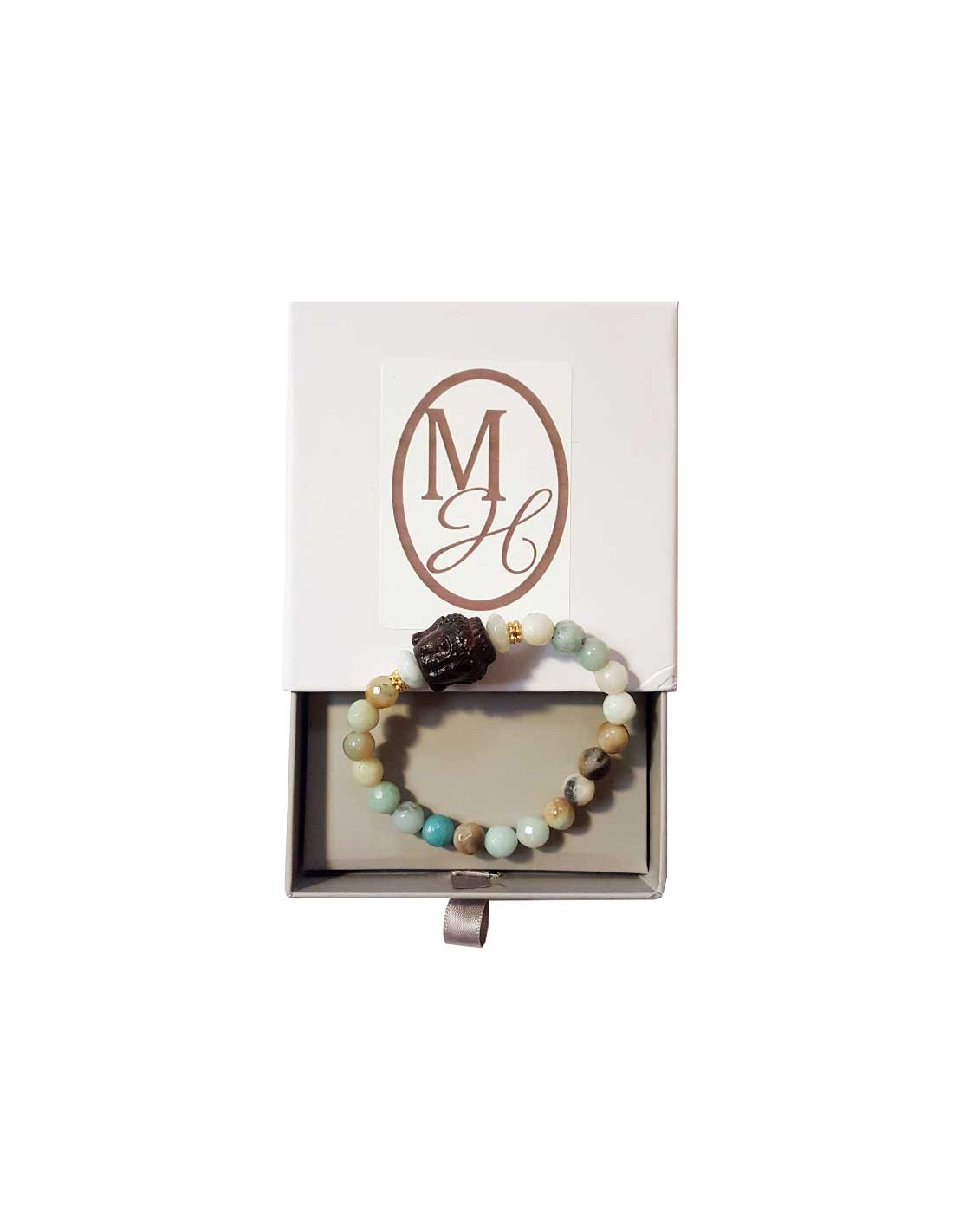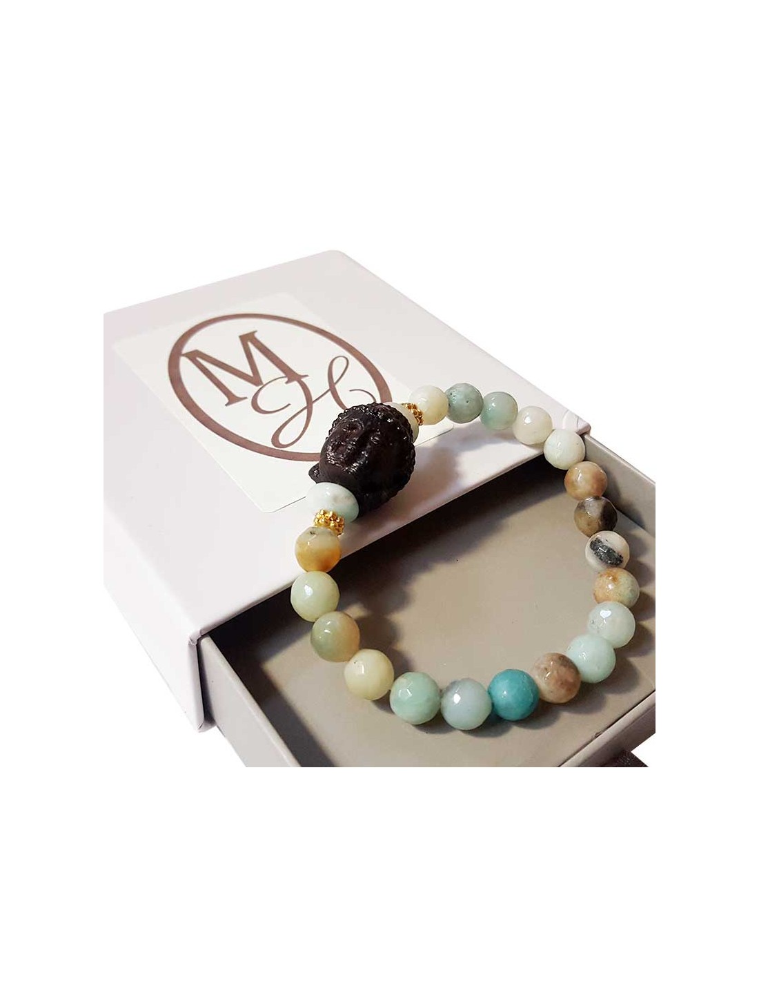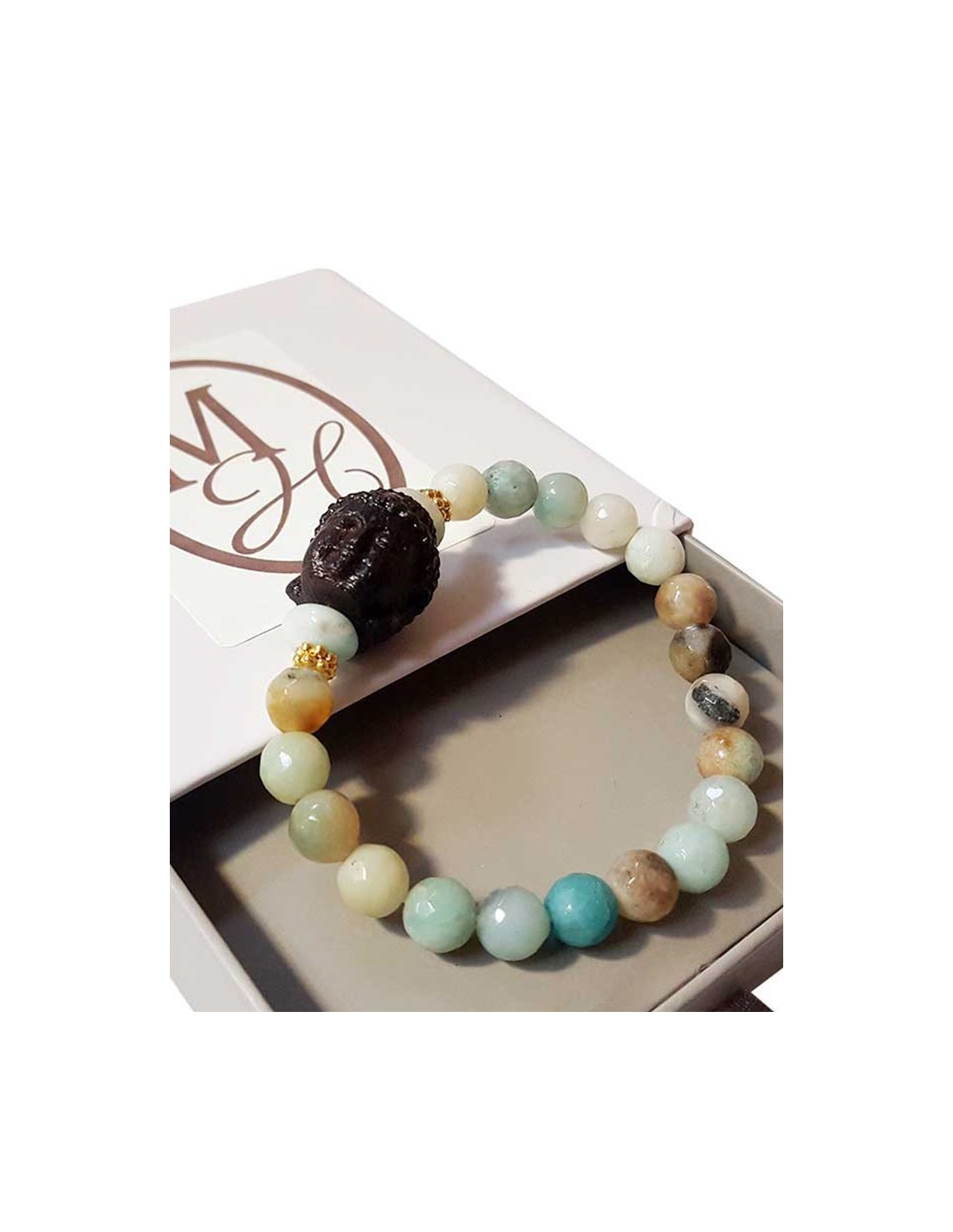 Bracelet tête de Bouddha amazonite et pierres de rivière