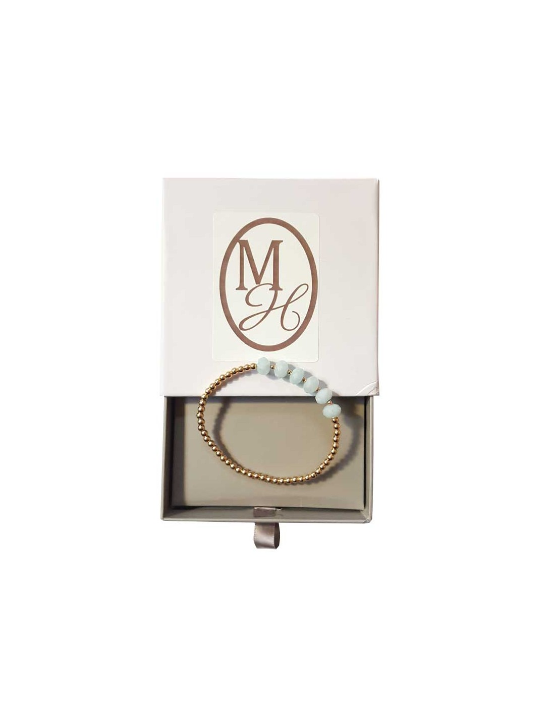 Fin et brillant, ce bracelet chic est parfait pour une humeur naturelle et soignée. Les perles dorées apportent du peps lumineux et mettent en valeur les perles facettées d'aigue-marine.