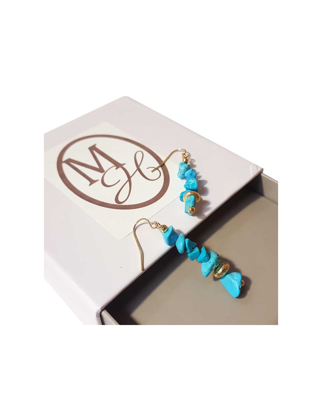 Boucles d'oreilles pendantes rocailles dorée et turquoise