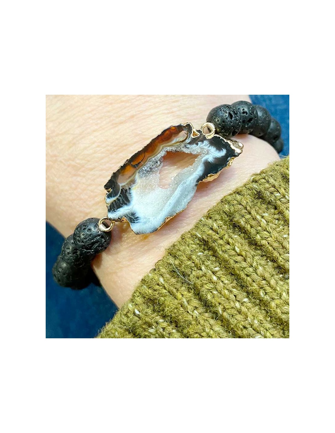 Bracelet en pierre de lave et tranche d'agate