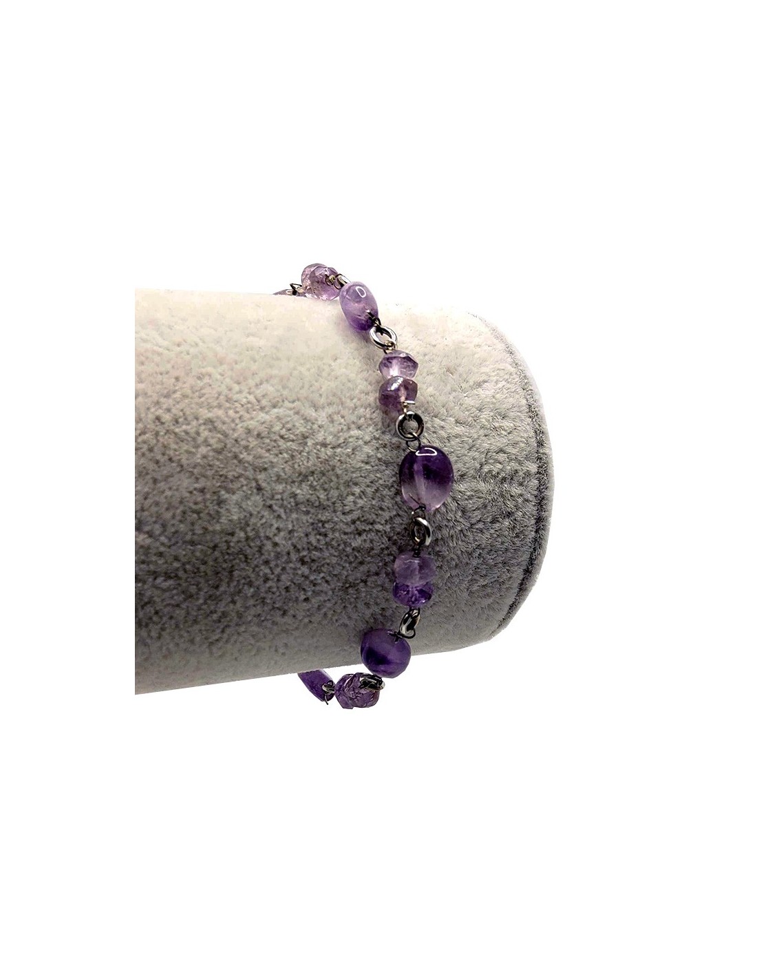 Bracelet en argent 925 avec perles en améthyste, taillées et roulées dans un ordre créant un joli motif.