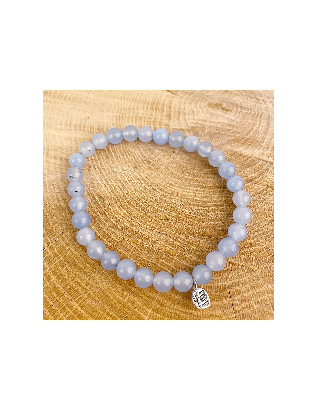 Bracelet à fil élastique en pierres fines naturelles de jade bleu. Accompagné d'une petite breloque argentée, ce bracelet apporte une touche douce et tranquille à votre poignet.