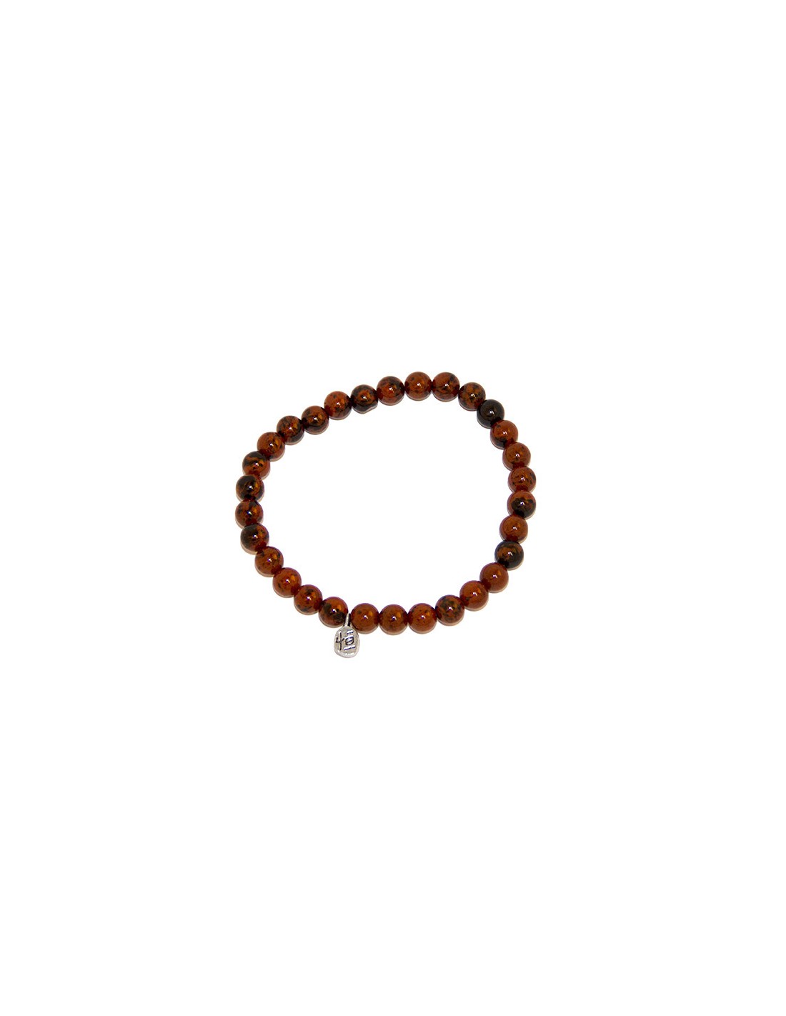 Bracelet à fil élastique en pierres naturelles d'obsidienne acajou, dite mahogany. Accompagné d'une petite breloque argentée, ce bracelet donne une touche douce et sereine à votre poignet.
