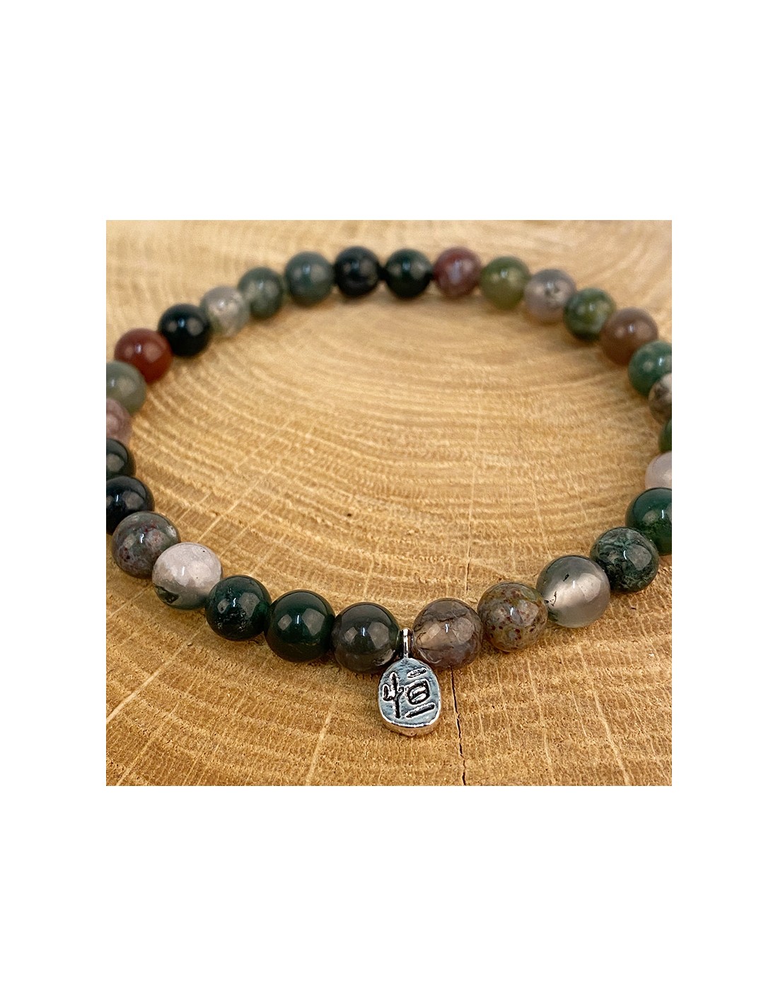 Bracelet à fil élastique avec de l'agate indienne, pierre fine naturelle. Accompagné d'une petite breloque argentée, ce bracelet donne une touche douce et sereine à votre poignet.