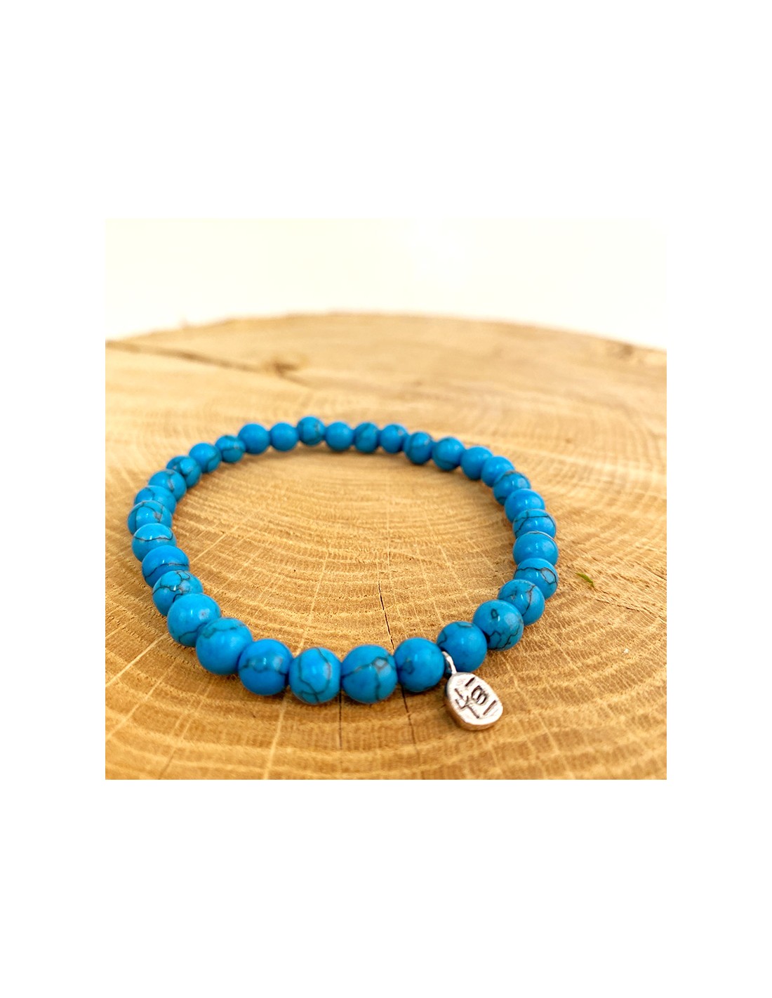Bracelet à fil élastique en turquoise, pierre fine. Accompagné d'une petite breloque argentée, ce bracelet donne une touche douce et sereine à votre poignet.