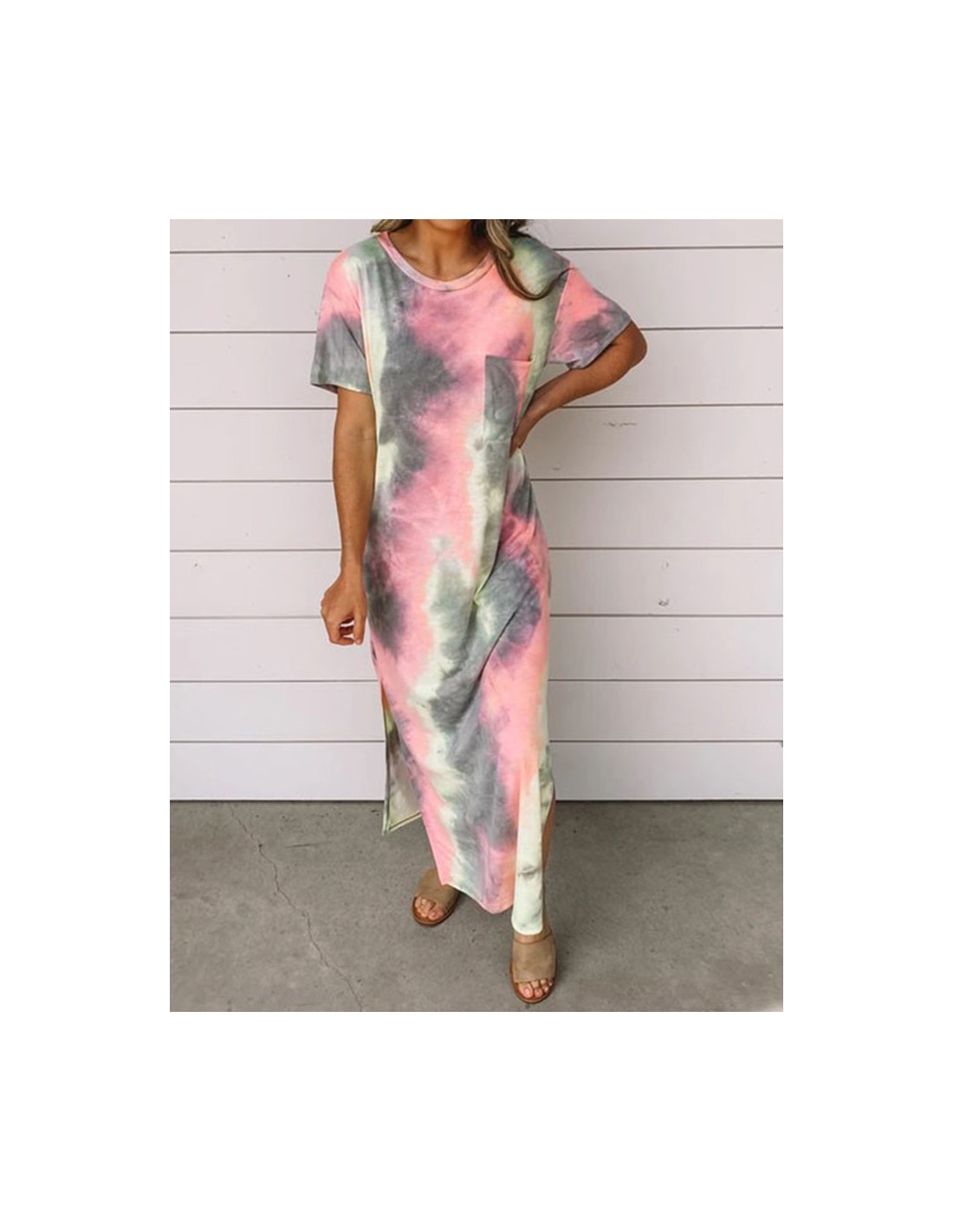 Robe longue à la coupe simple, aux couleurs chatoyantes, ses teintes de rose, pistache et gris se mélangent à merveille pour créer un style bohème tendance. Le batik est un style de teinture issu de l'Indonésie, très prisé pour son aspect fait main.