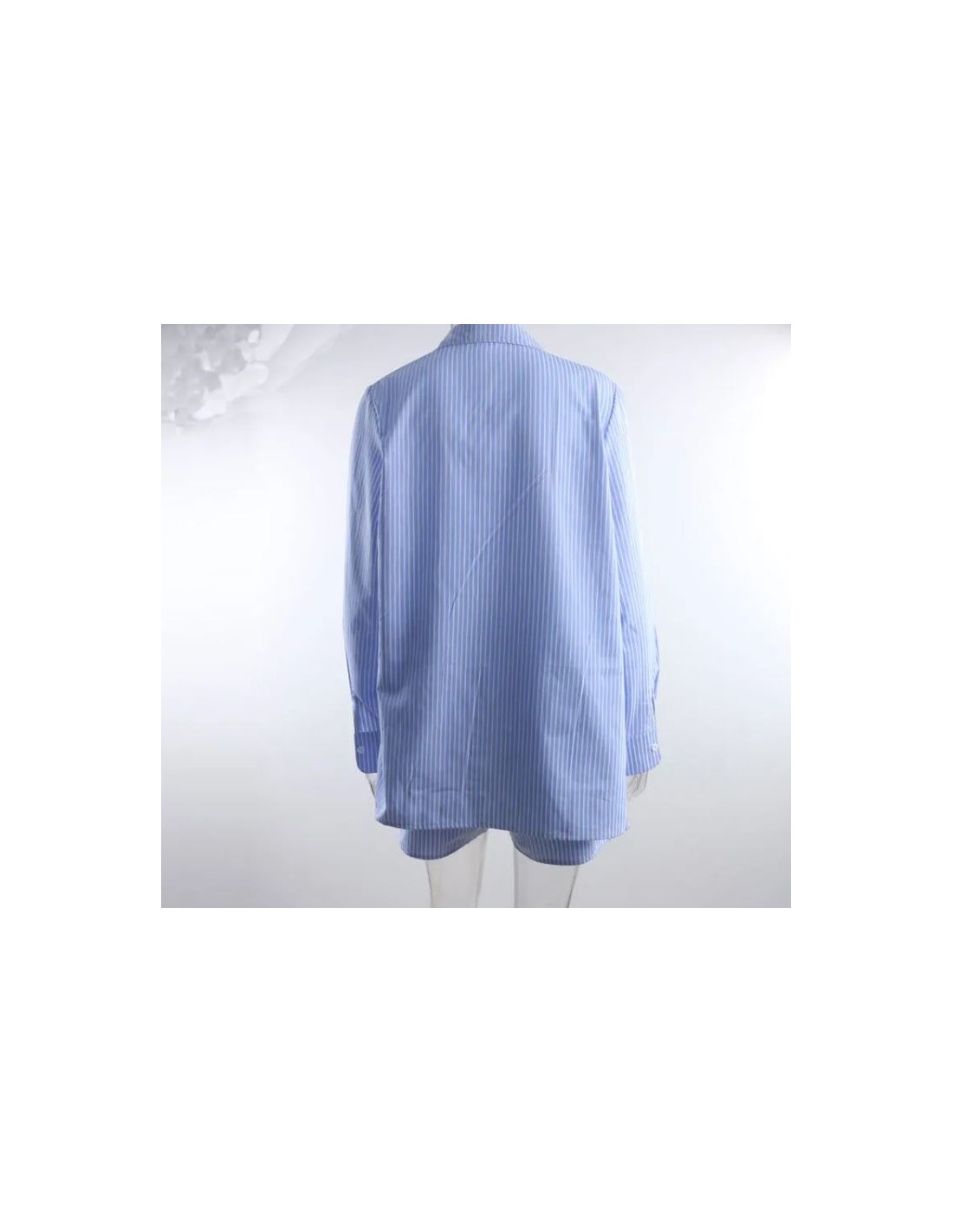 Ensemble 100% coton d'une chemine et d'un short assortis, d'un bleu ciel doux ligné blanc. La chemise est ample et, légèrement ouverte, donne un effet sexy. Vous pouvez également la porte seul avec pantalon, jeans...