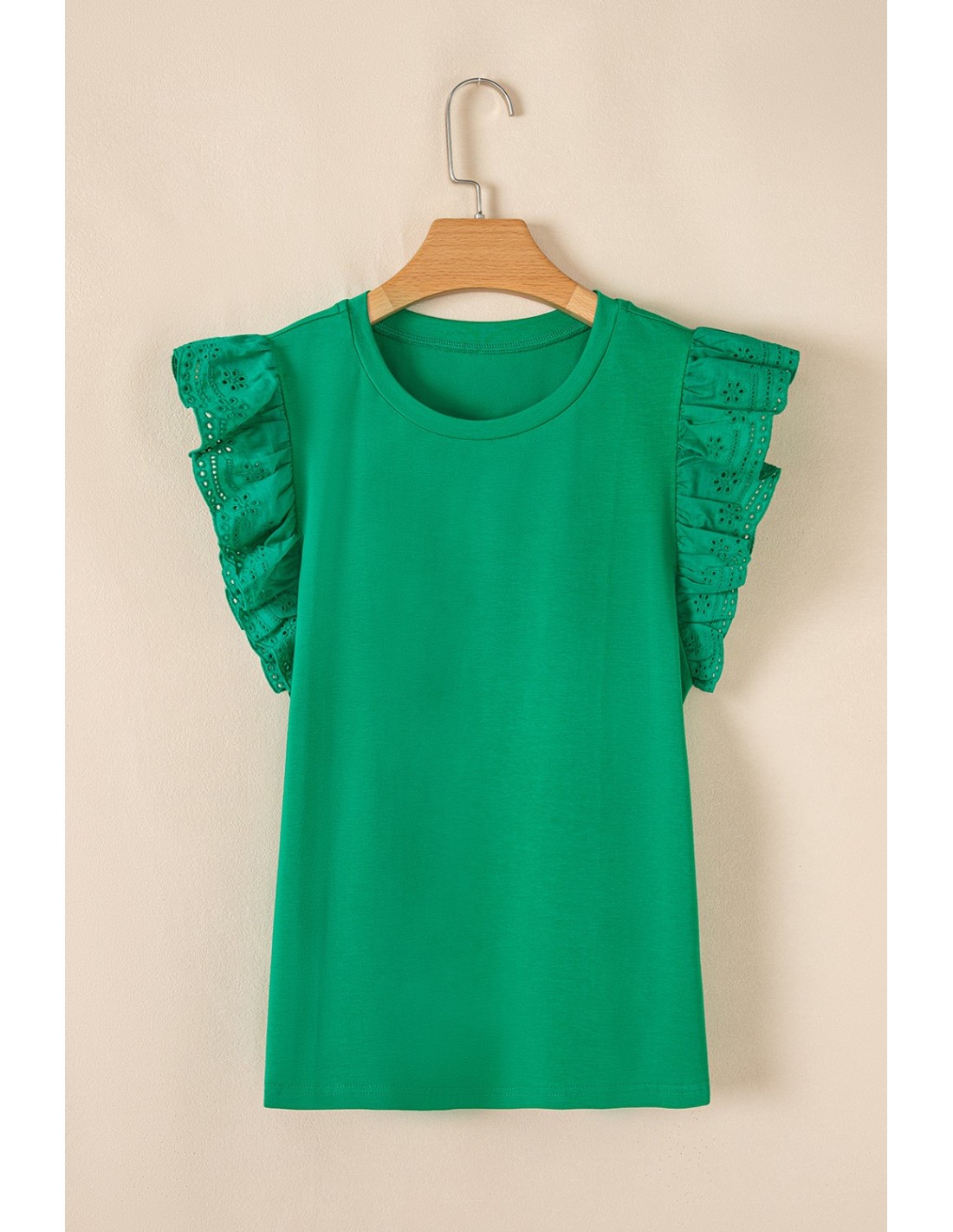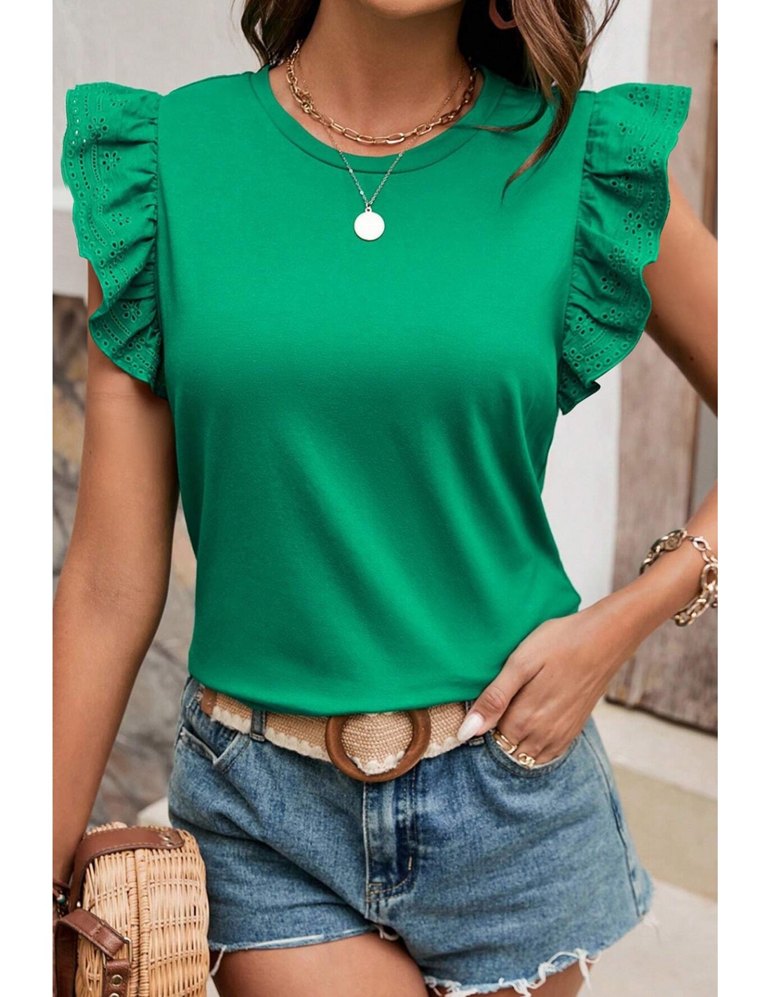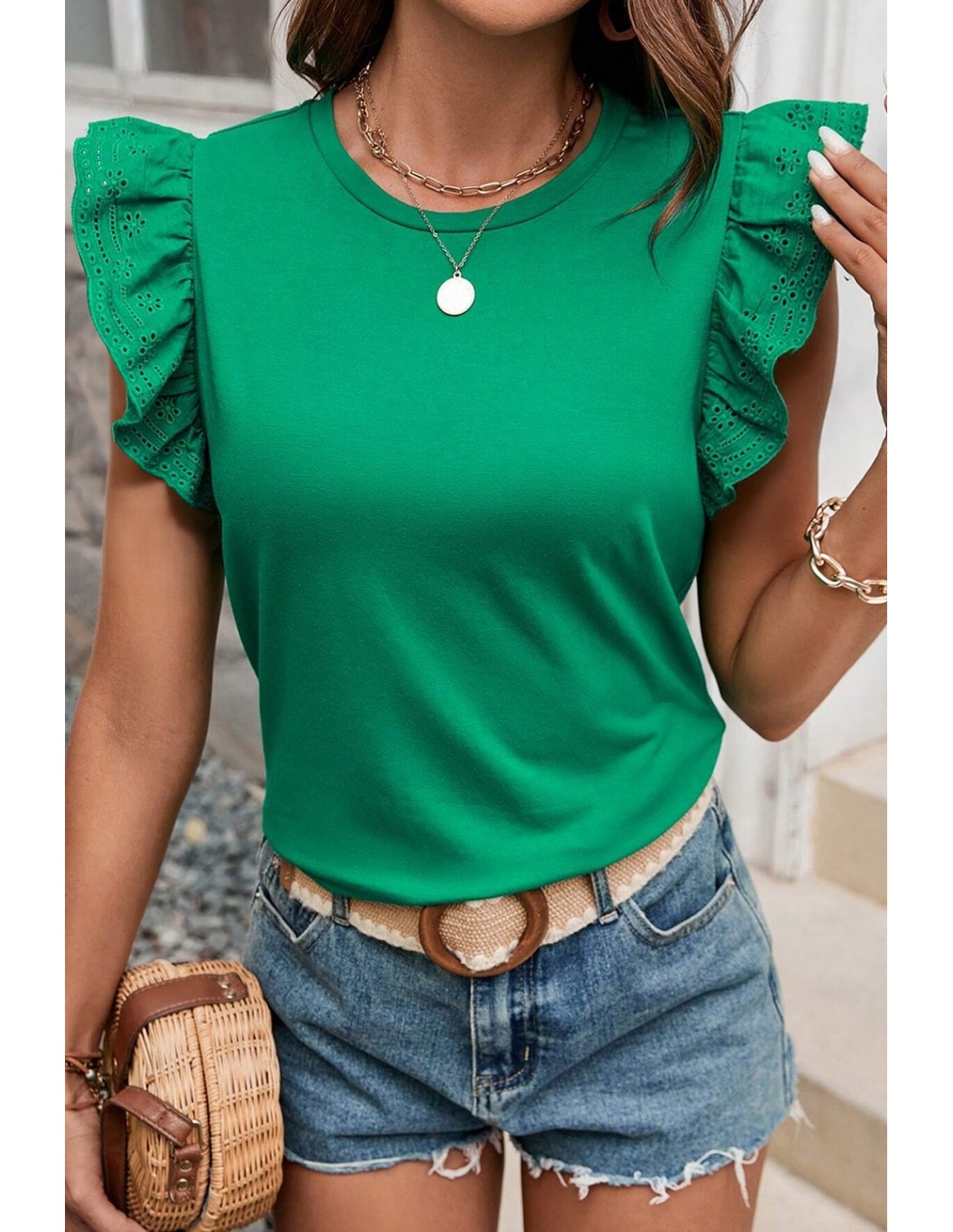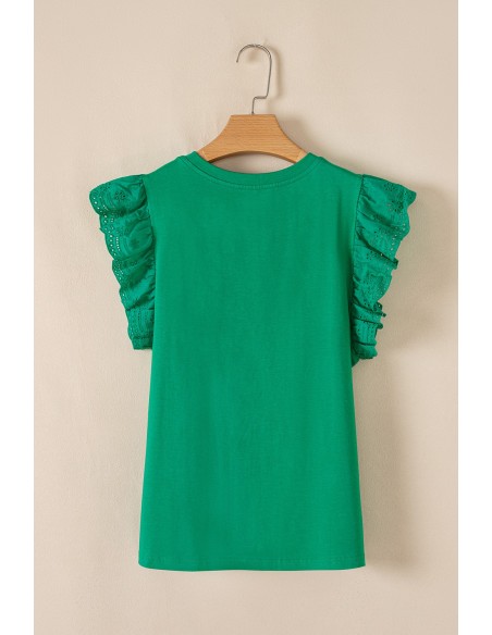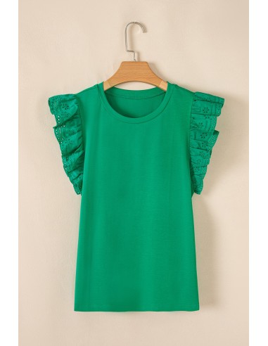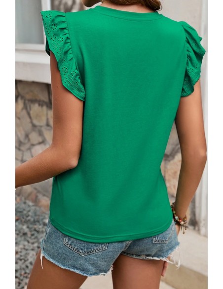 Top à Manches avec volants Brodées Vert Foncé – style naturel et bohème chic