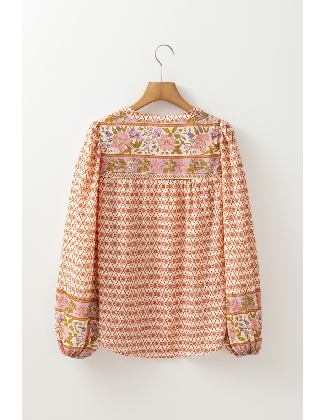 Chemise Bohème Multicolore à Imprimé Floral Mélangé et Manches Bouffantes