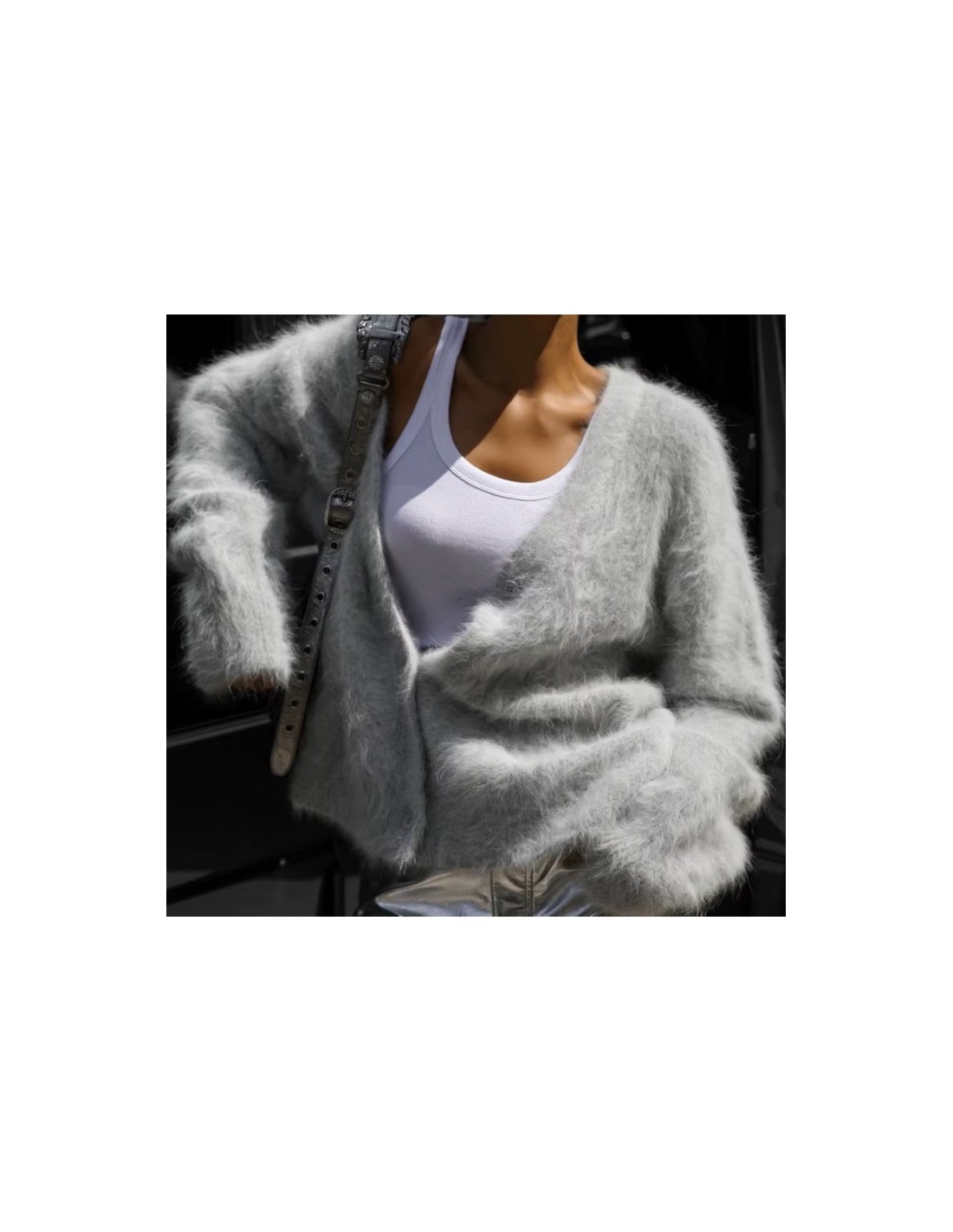 Découvrez ce pull cardigan style mohair, doux, chaud et élégant, parfait pour la mi-saison comme pour l’hiver. Sa texture duveteuse apporte confort et style, tout en restant léger et agréable à porter.