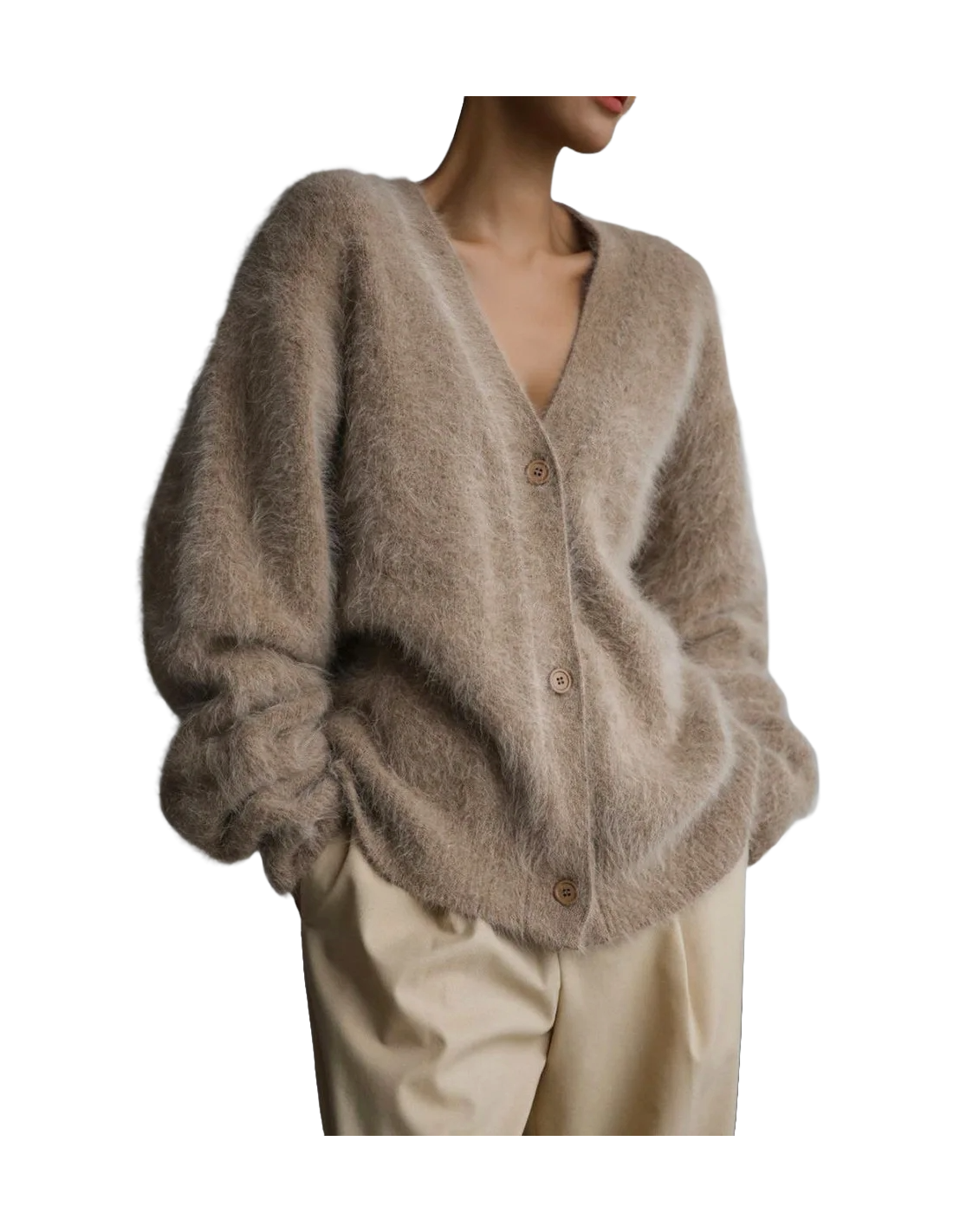 Découvrez ce pull cardigan style mohair, doux, chaud et élégant, parfait pour la mi-saison comme pour l’hiver. Sa texture duveteuse apporte confort et style, tout en restant léger et agréable à porter.