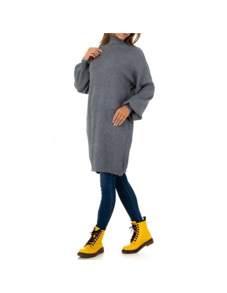 Ample mais aussi long, ce pull peut se porter comme une tunique. Le tricot est lourd et tombe droit sur le corps, le col est montant et peut se rouler. Le tout est assez stretch. Pour ajouter du relief, n'hésitez pas à utiliser une ceinture fine sous la poitrine pour vous mettre en valeur.