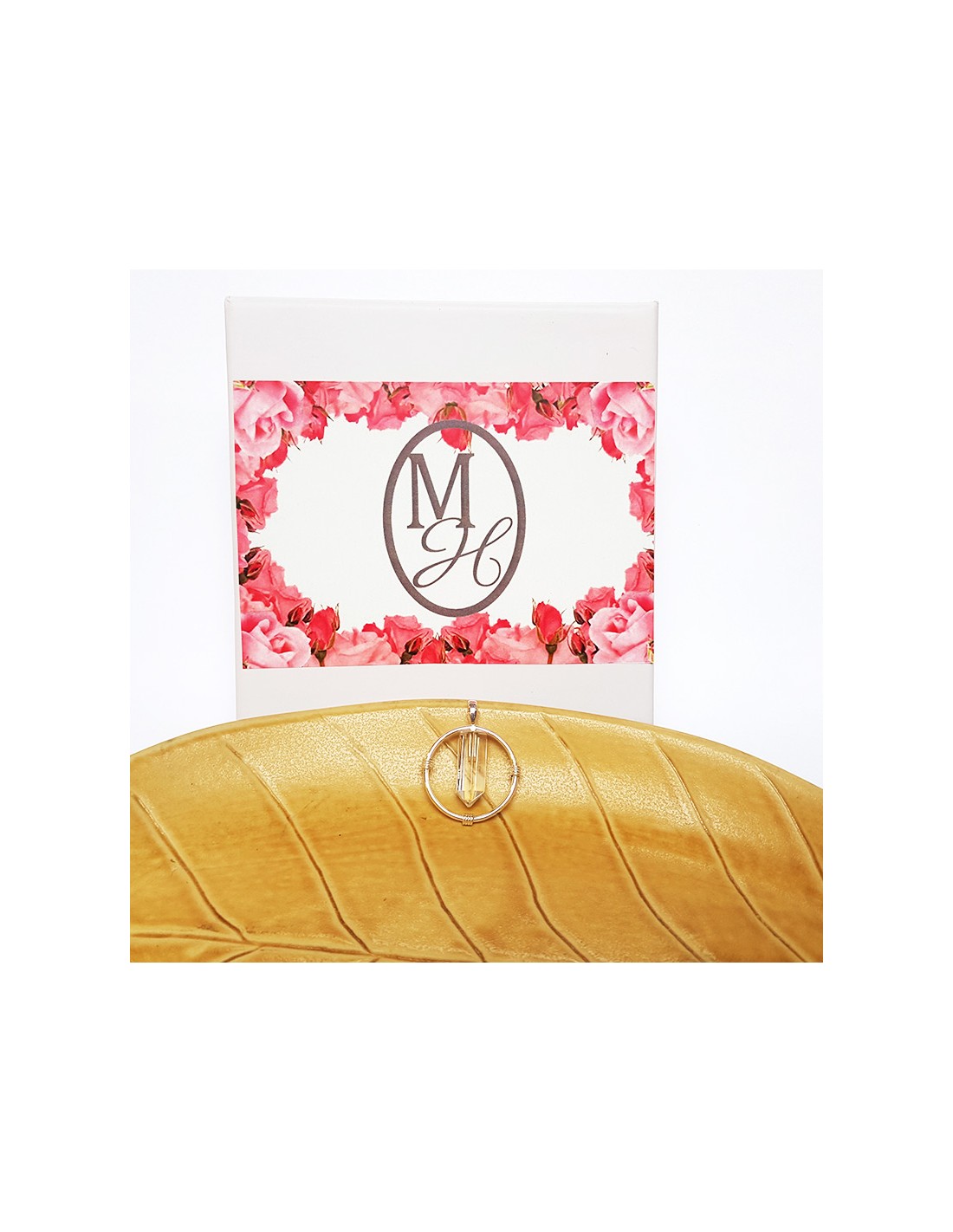 Ce pendentif est un cercle raffiné en véritable argent 925 qui protège une belle pierre fine de cristal de roche taillé en pointe. Accessoire discret et chic, son design épuré met en valeur la pierre fine.