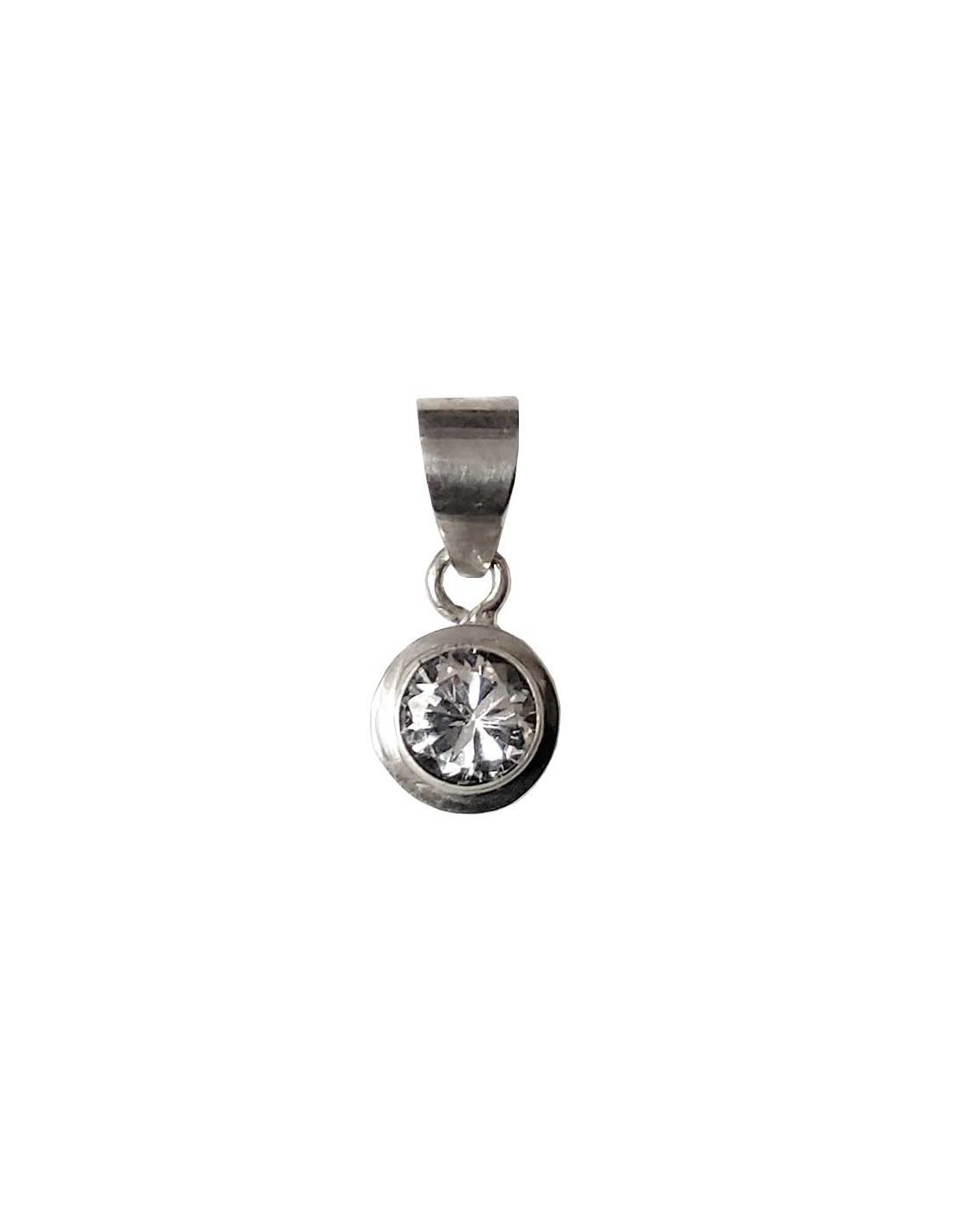 Pendentif cristal zircon blanc rond - argent 925
