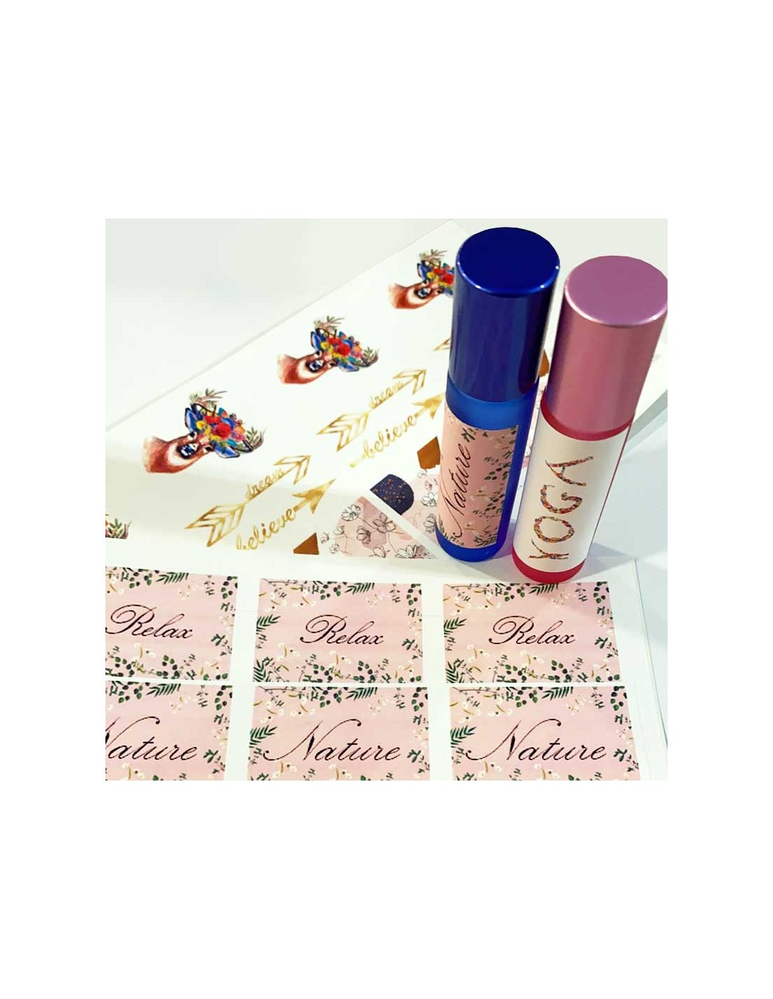 Lot de 36 étiquettes autocollantes de 48 x 31 mm pré-imprimées d'images et textes sélectionnés pour un style bohème et doux.